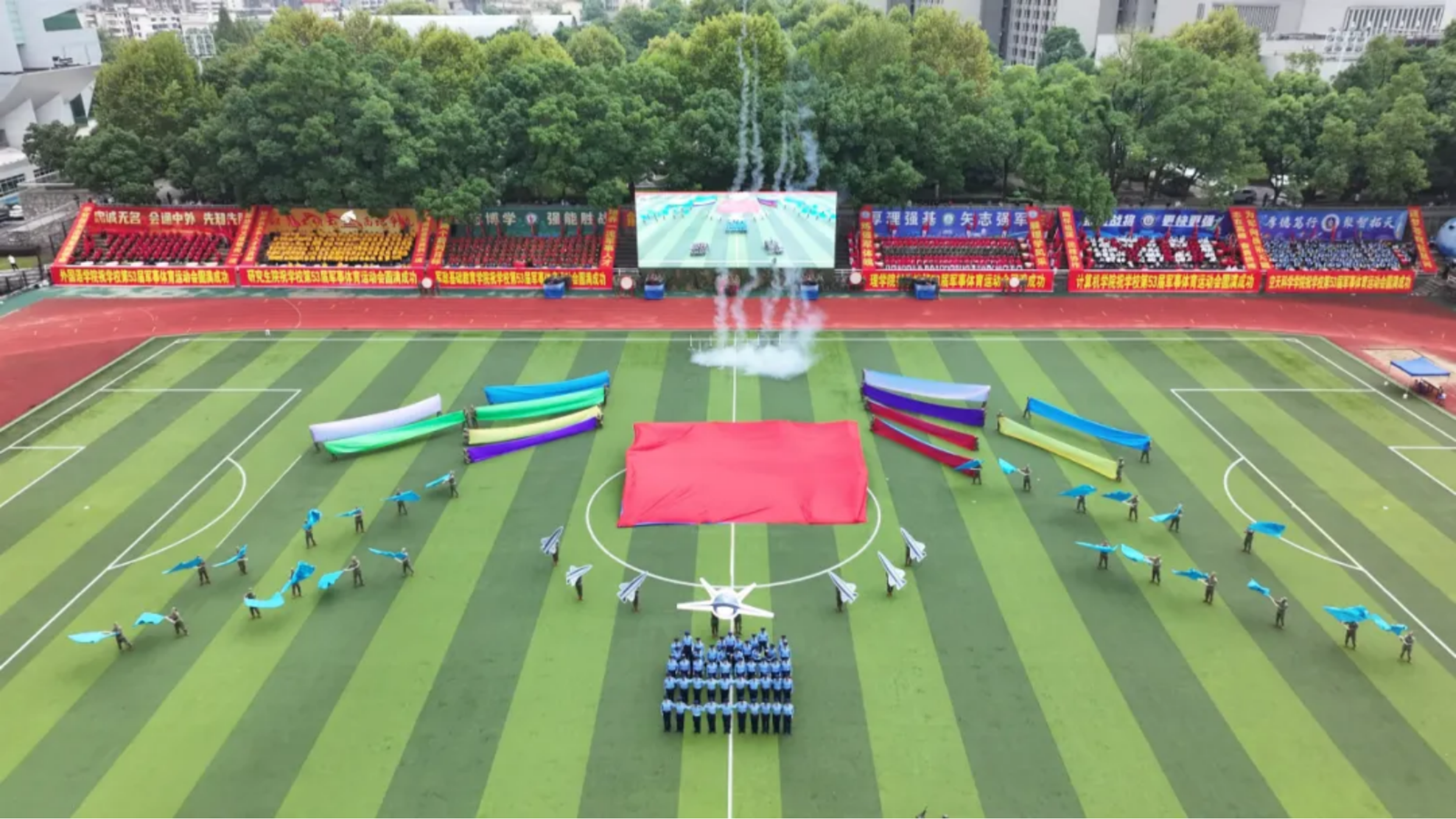 顽强拼搏、追求卓越、超越自我!经过两天扣人心弦的激烈比拼,在运动健儿的奋力拼搏、全校师生员工的热情参与、全体工作人员的辛勤付出下,国防科大第53届军事体育运动会于10月19日下午圆满落幕。今年的赛事中,共有1602名运动员参加了62个田径项目和20个军事类项目,25人次刷新了校运会纪录。