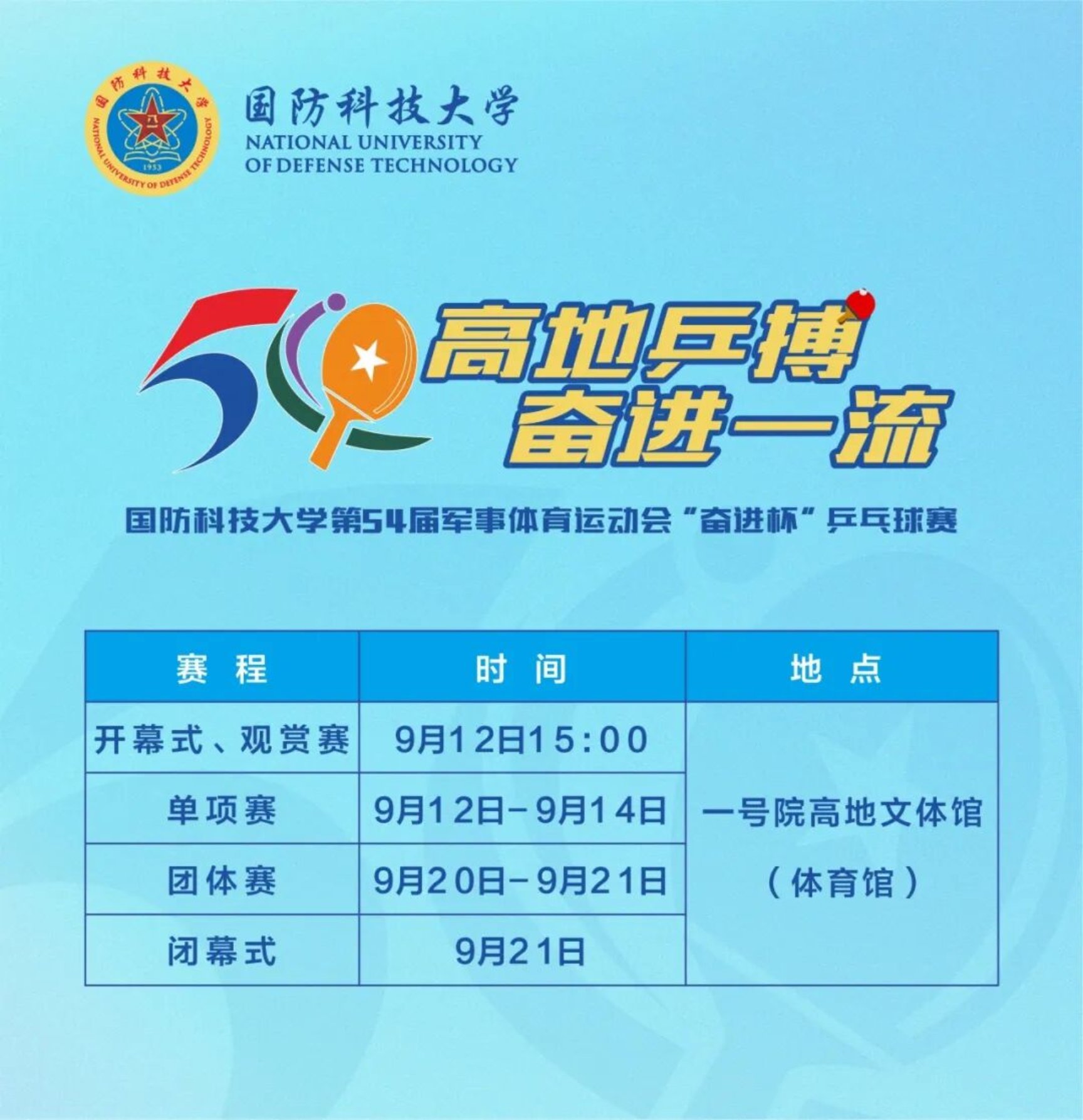 9月12日下午,beat365平台唯一官网第54届军事体育运动会“奋进杯”乒乓球赛在长沙校区一号院高地文体馆正式拉开帷幕。
