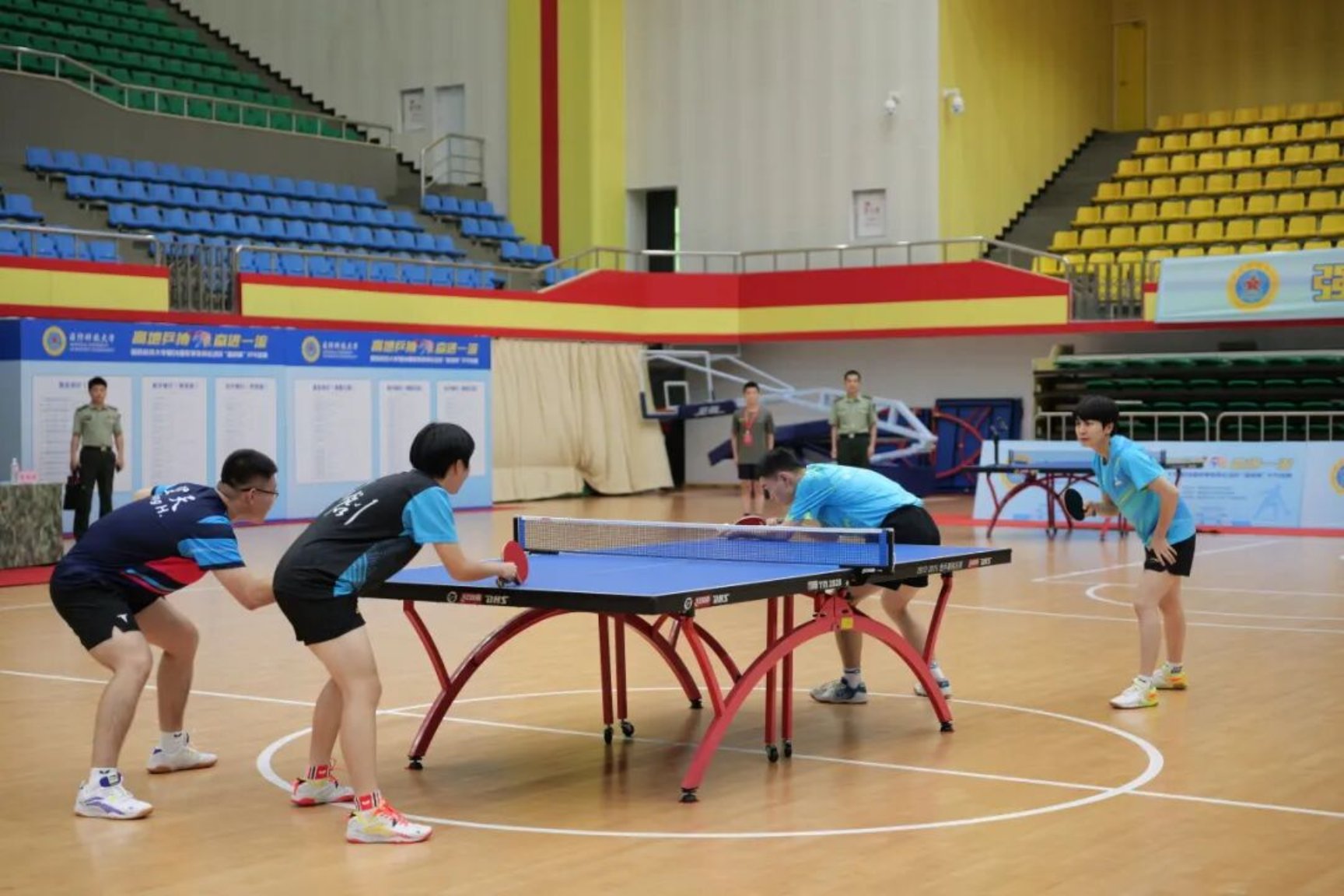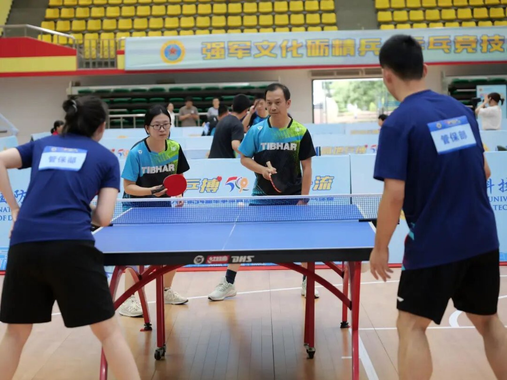 赛前,木子与学校获得今年全军院校“强军杯”乒乓球双打冠军的张天宬、王瀚,国家二级运动员陈思羽等进行了观赏赛,点燃了全场热情。军政基础教育学院教员崔琳在一旁进行专业而生动的解说。