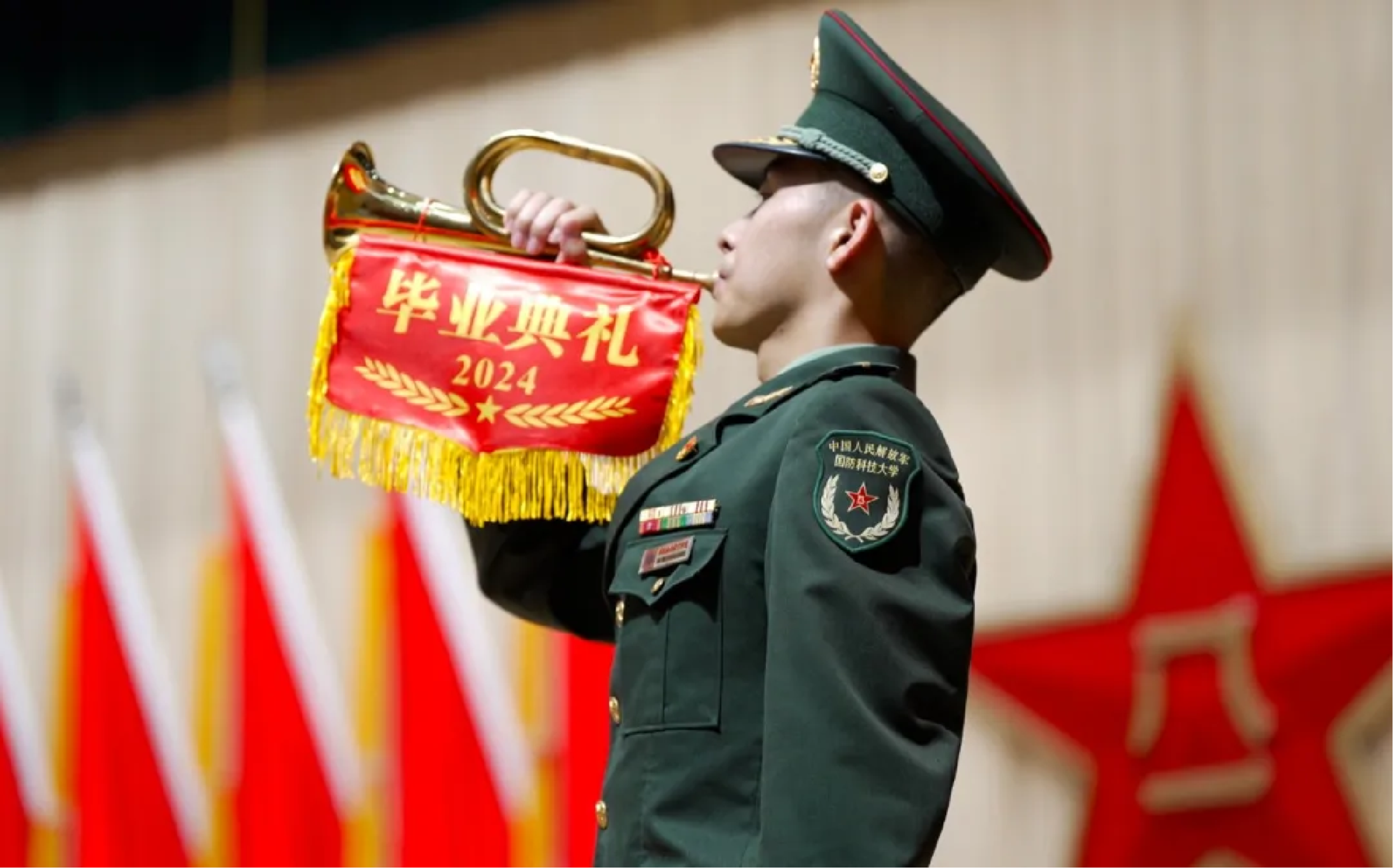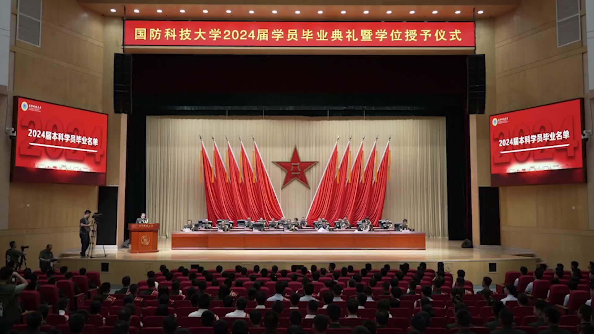 在全军上下深入学习贯彻中央军委政治工作会议精神之际,7月4日下午,国防科大2024届学员毕业典礼暨学位授予仪式在长沙校区三号院学术交流中心隆重举行。校长黎湘出席典礼并为本科和研究生学员代表颁发毕业证书和学位证书,政治委员傅爱国为优秀毕业学员颁发荣誉证书并发表讲话。
