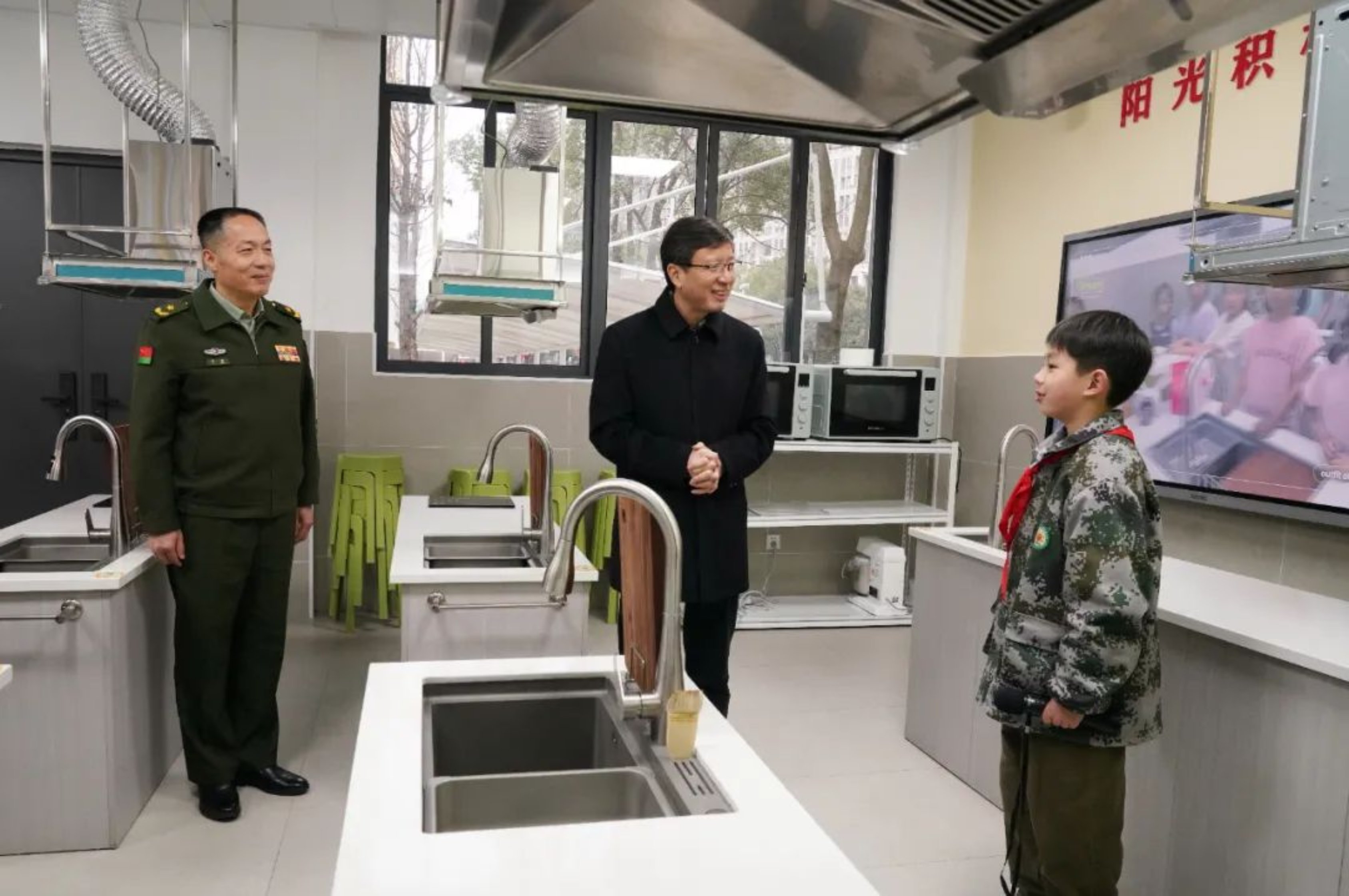 陈杰首先听取了八一小学关于办学发展情况的汇报,详细了解学校办学历程、教育教学、文化体育、劳动教育、课后服务以及双拥共建等情况,仔细检查校园消防设施和校园安全有关工作,并与师生亲切交谈。在小小讲解员们的引导下,陈杰实地察看了学校的多媒体教室、阅览室、体育馆、“厨艺教室”等,深入了解学校师资配备、课程开展、学生学习锻炼、课余生活等情况,对八一小学的教育工作给予充分肯定。