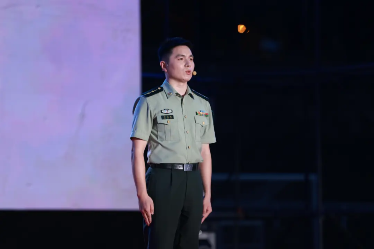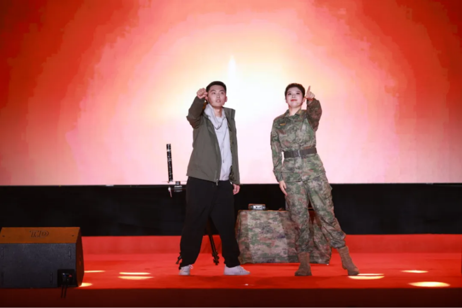 今年成功考取学校文职的地方研究生王磊、张恒,通过音乐情景剧《孔雀蓝的决定》,将自己考取军队文职的经历搬上舞台,真人真事与真情实感的叠加,让现场观众无不为之动容,展现了该学院以高地文化为牵引,在教育引导地方研究生报考军队文职方面取得的显著成效。