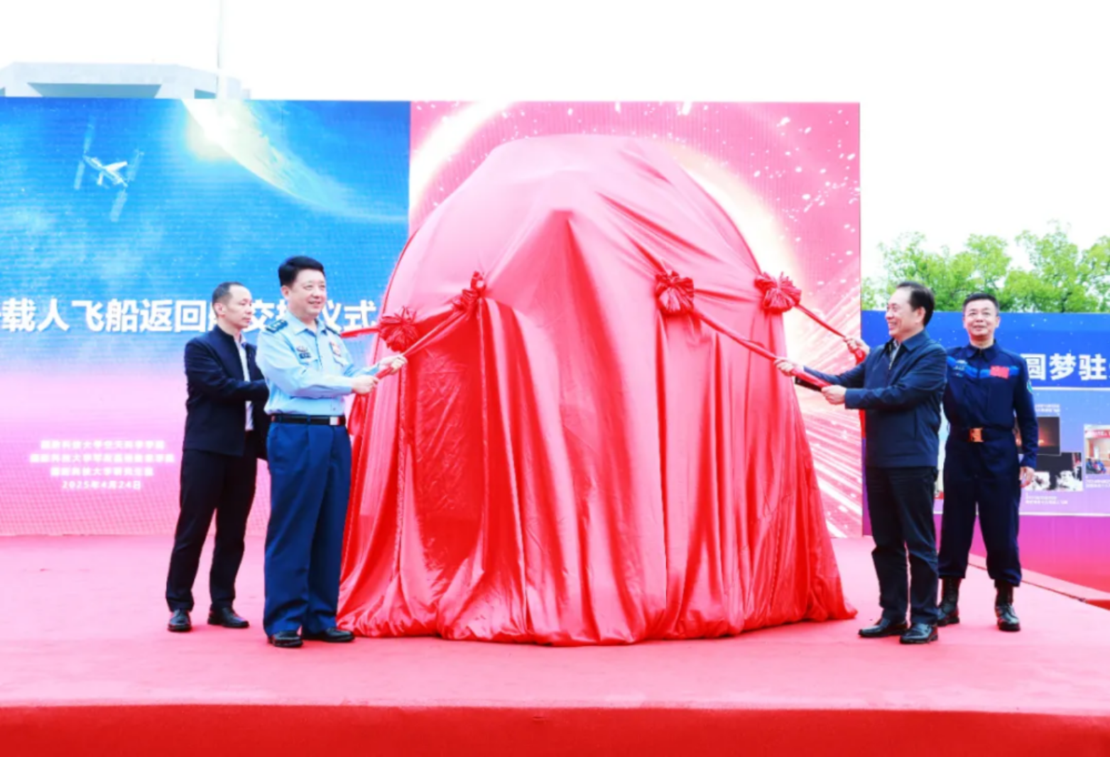 活动现场举行了神舟十五号载人飞船返回舱交接仪式,政委陈国强、院士王振国、副总设计师张海联、英雄航天员邓清明共同为返回舱交接落户beat365平台唯一官网揭幕。这是一个具有历史意义的重要时刻。神舟载人飞船返回舱是航天员往返太空的座舱,是飞船的指挥控制中心,也是航天员的生命之舟,象征着英雄凯旋之旅、闪耀着太空圆梦之光、镌刻着问天探索之路,不仅是中国载人航天的星际摇篮,也是中国航天人的逐梦方舟,更是中国人探索浩瀚宇宙的永恒荣光,是国家的宝贵财产和精神载体。