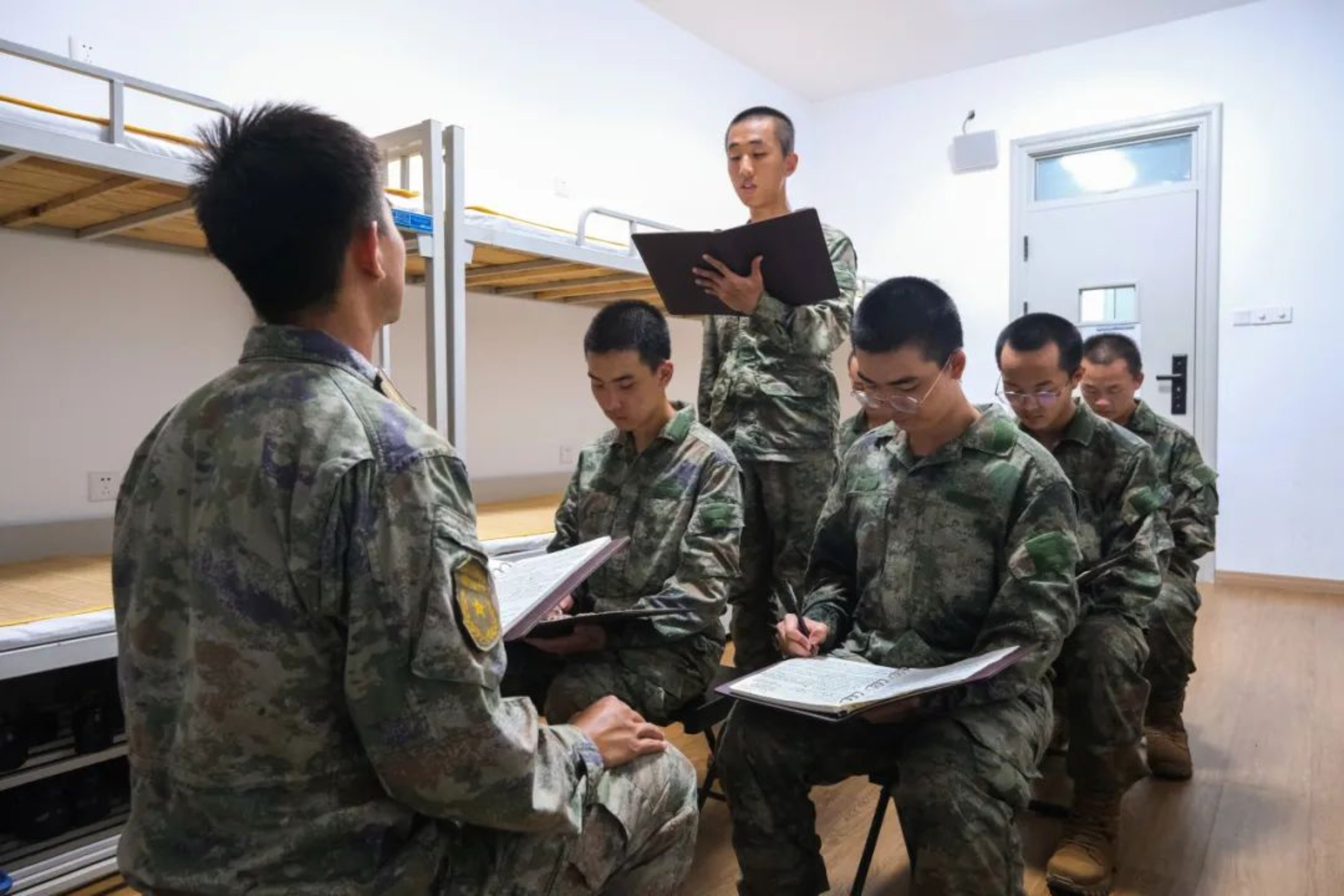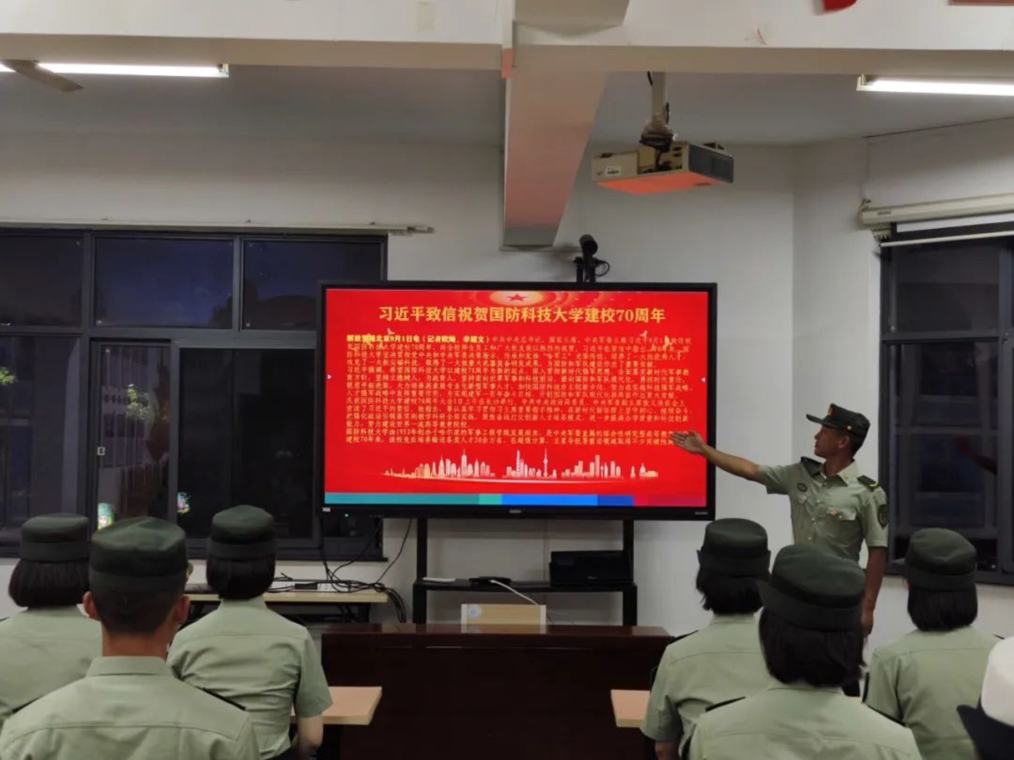 军政基础教育学院新训大队在组织学好习主席贺信精神的同时,指导各新训队开展形式多样、内容丰富的系列活动,进一步拓宽途径、激发学习热情。某队由干部骨干带头,以集中教育、班排讨论等形式,原原本本学习贺信内容,并利用训练间隙,开展“不负殷切嘱托,争做尖兵力量”主题讨论交流活动,谈感受,表决心,强化使命担当;某队学员们第一时间把主席贺信写在笔记本扉页上,在政教课上开展专题讨论,由队干部逐句解读贺信原文,学员们认真撰写心得体会;某队组织骨干对主席贺信中提到的建校70周年重大成就进行梳理,开展“快问快答”活动,发挥学员自主能动性,寓学于乐,乐中有学。