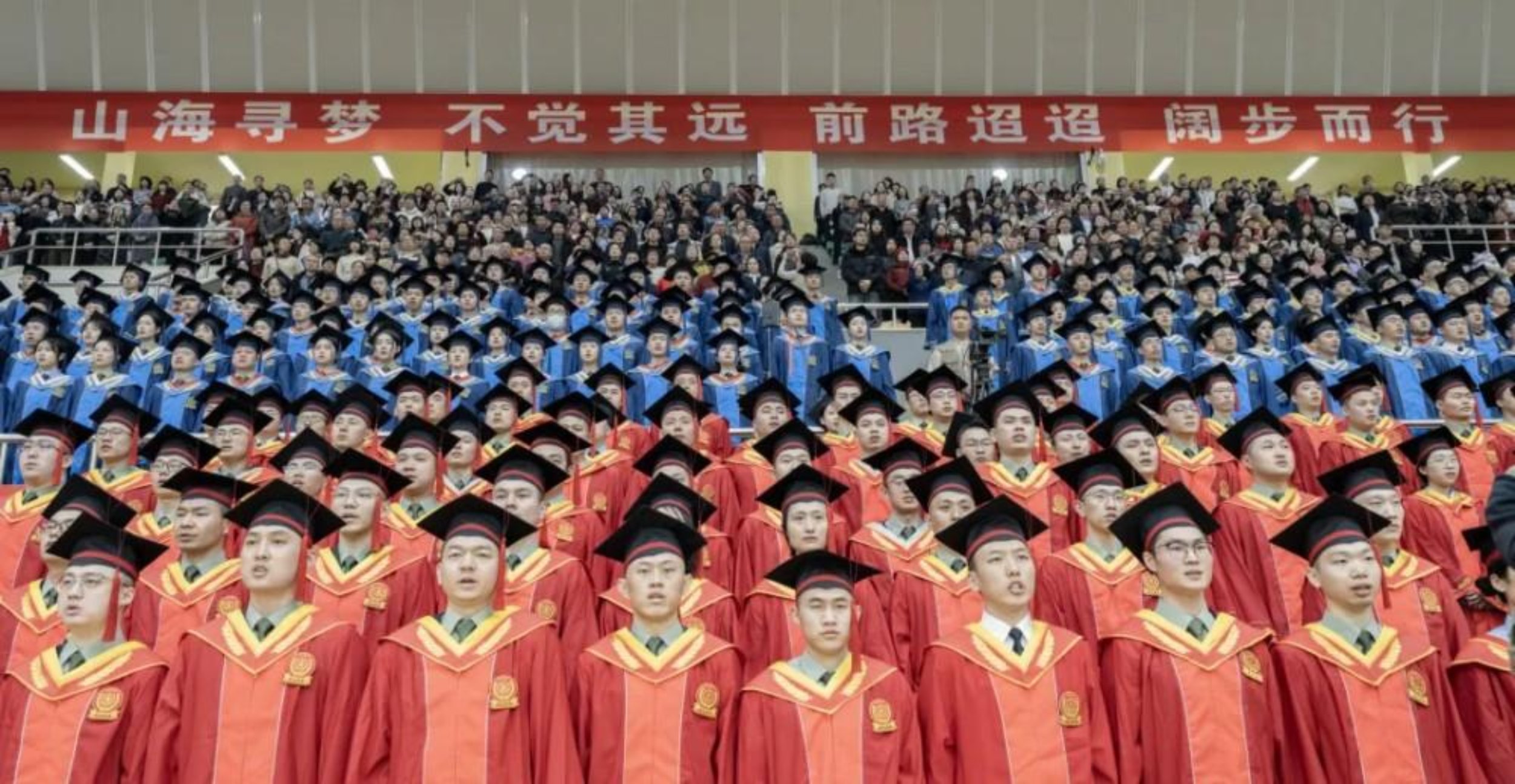 学校2025年秋季学期博士硕士学位获得者和家属代表等共约2300人参加仪式。