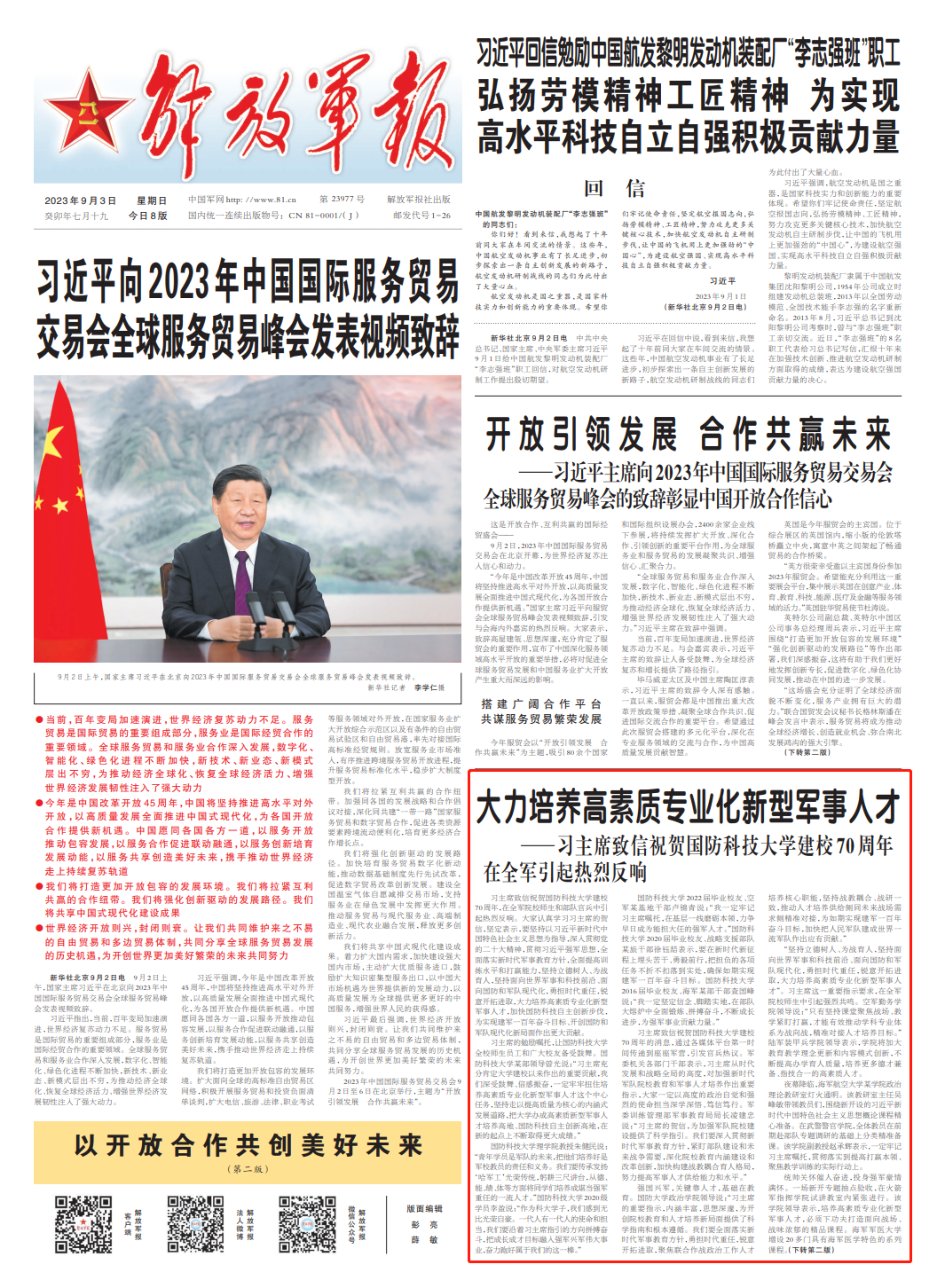 (解放军报北京9月2日电 记者魏兵、张琳、李琳、陈利,特约记者王学峰、于正兴、王泽锋,通讯员解瑞玖、汪玉明、侯娟、侯融、郭领领、李康、刘波、邹珺宇、汪天玄、肖盼、梁帅、刘含钰、李强、黄薇薇、魏震宇、马耀辉、洪进、胡勇华、薛维高、崔雅庆、肖雨、杜天戈、黄兴等采写)