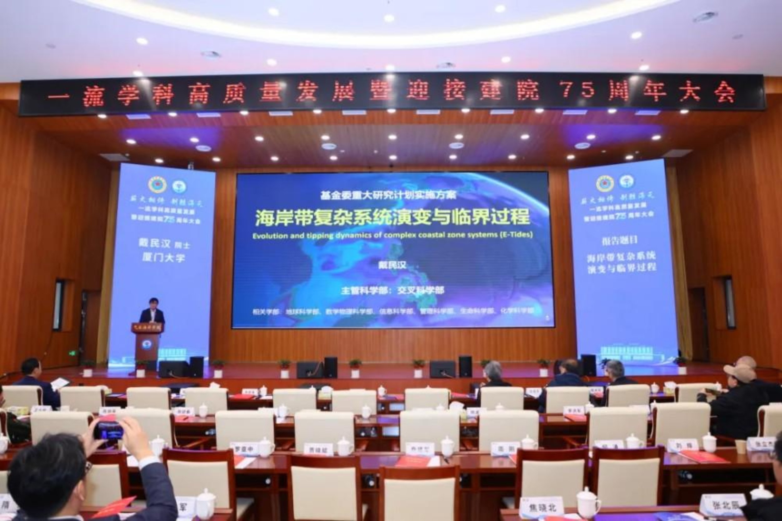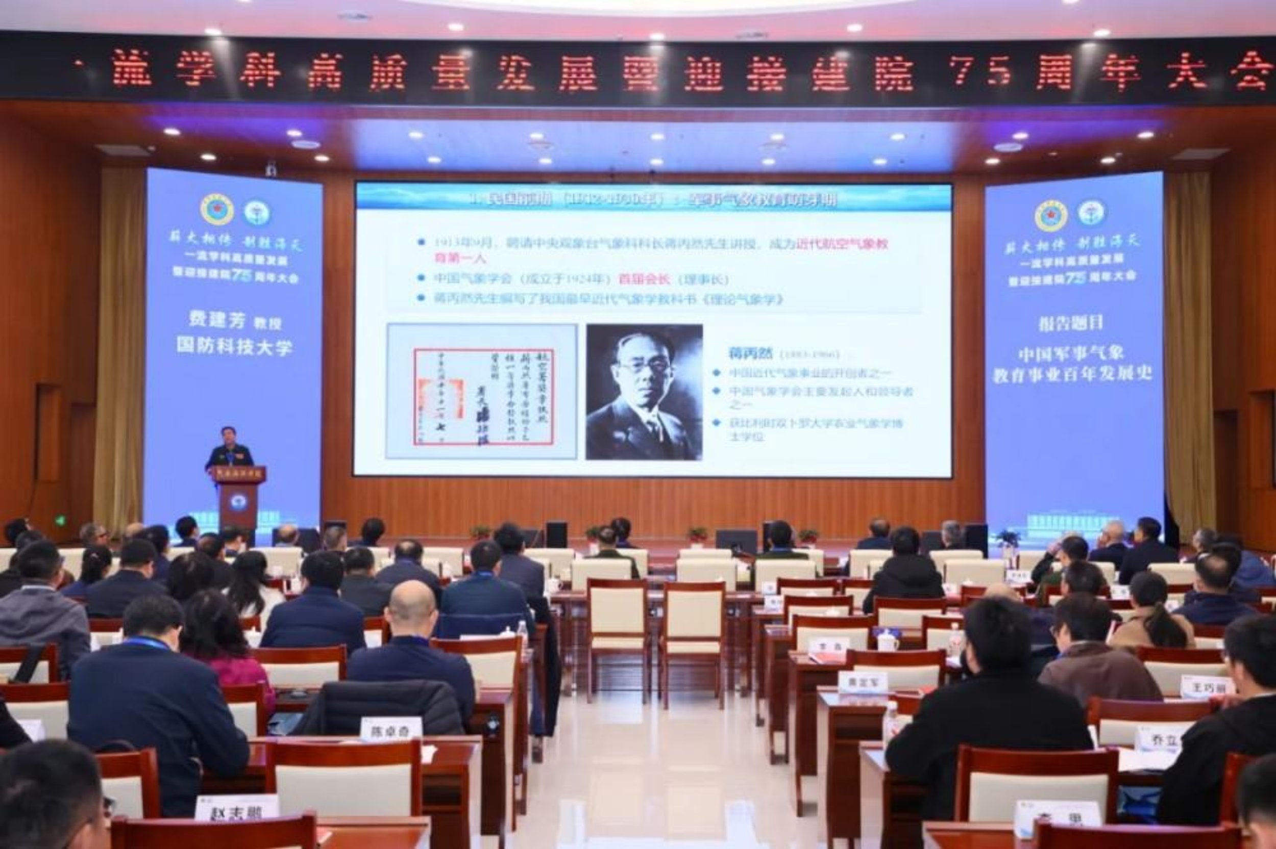 开幕式上,全体与会人员共同观看了学院介绍片《测天探海、奋斗强军》,系统回顾了学院自1950年军委气象干部训练班起步,历经多次调整变迁,逐步发展成为国家和军队气象海洋领域人才培养的重要基地、科技创新的重要力量、战略发展的重要智库的辉煌历程。大会宣布成立了由24名知名院士、专家学者组成的学院一流学科发展战略指导委员会。