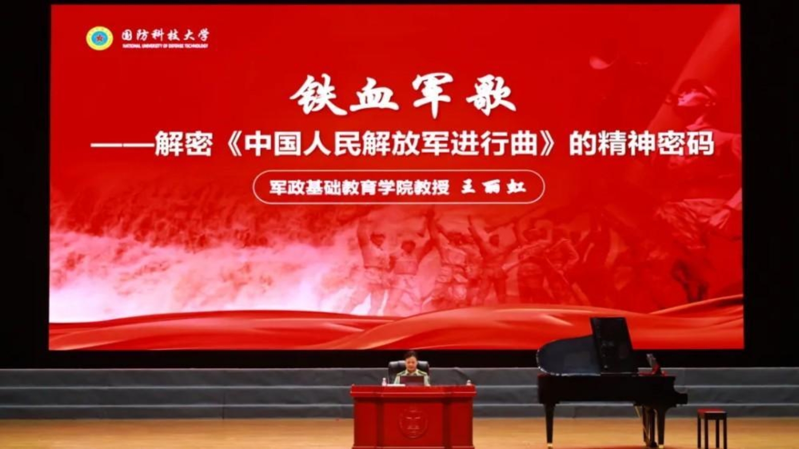 根据入学入伍教育专题授课安排,9月10日下午,国防科大三号院学术交流中心举办了“铁血军歌——解密《中国人民解放军进行曲》的精神密码”文艺公开课。学校军事人文核心课程教学团队首席教授、音乐教育学博士、国家艺术基金库专家王丽虹作专题授课。学校政委陈国强出席。