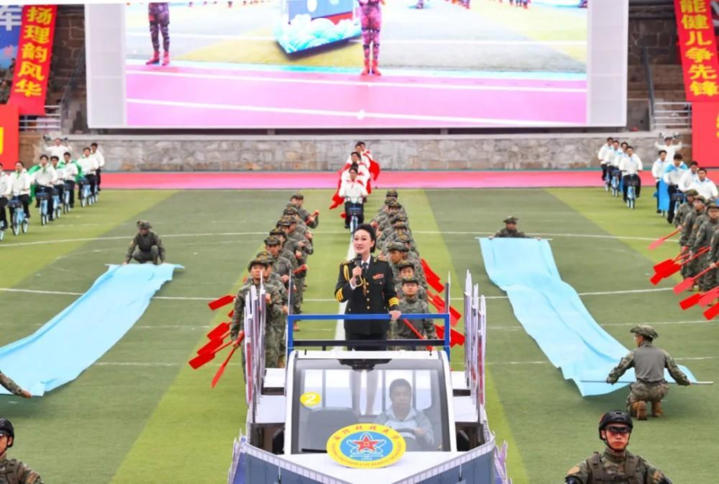强军谋胜、闯创笃行。系统工程学院为观众带来青春昂扬、朝气蓬勃的表演《幸福科大 快乐起航》,展现科大学子团结协作、积极进取的风貌。