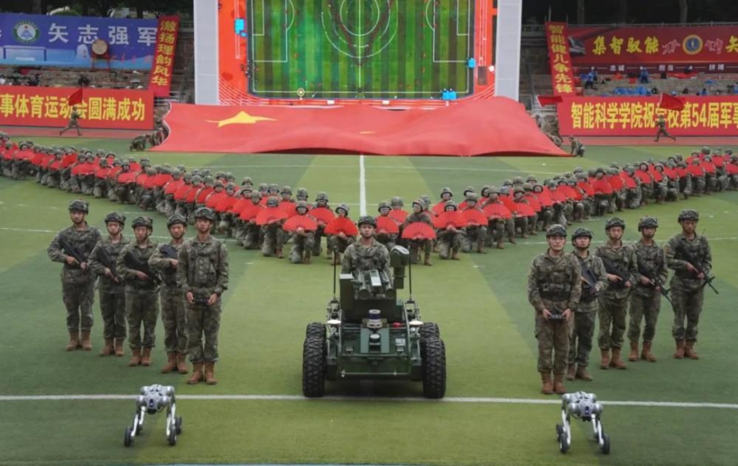 闭幕式在团体节目表演中拉开序幕。集智驭能,矢志打赢。智能科学学院为观众带来热血澎湃、激动人心的节目《高地之上 智胜未来》,传递出未来战场中智慧攻坚的磅礴气势。