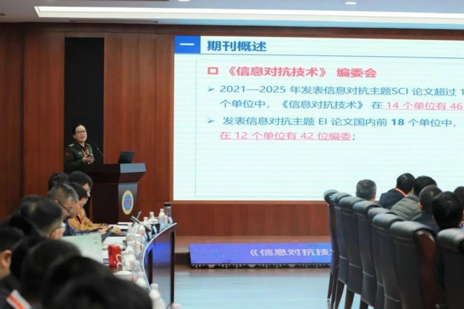 交流环节中,第十四届全国政协委员、中国科学院自然科学期刊编辑研究会秘书长刘筱敏研究馆员详细解读中国科学引文数据库(CSCD)的评选标准与流程,为期刊提升学术规范性与影响力提供指导;《雷达学报》编辑部贾守新主任从编委职能角度出发,探讨如何发挥编委在选题策划、稿件评审及学术传播中的关键作用;哈尔滨工程大学林云教授结合专刊组稿案例,分享如何通过精准选题策划与跨团队协作打造高质量学术专题;《信息对抗技术》主编曾芳玲教授围绕学术影响力提升、特色专栏建设等方面汇报了期刊近三年建设成果,聚焦推进期刊高质量发展、吸引优质稿源、扩大领域知名度、加强期刊文化建设等方面提出未来发展目标。