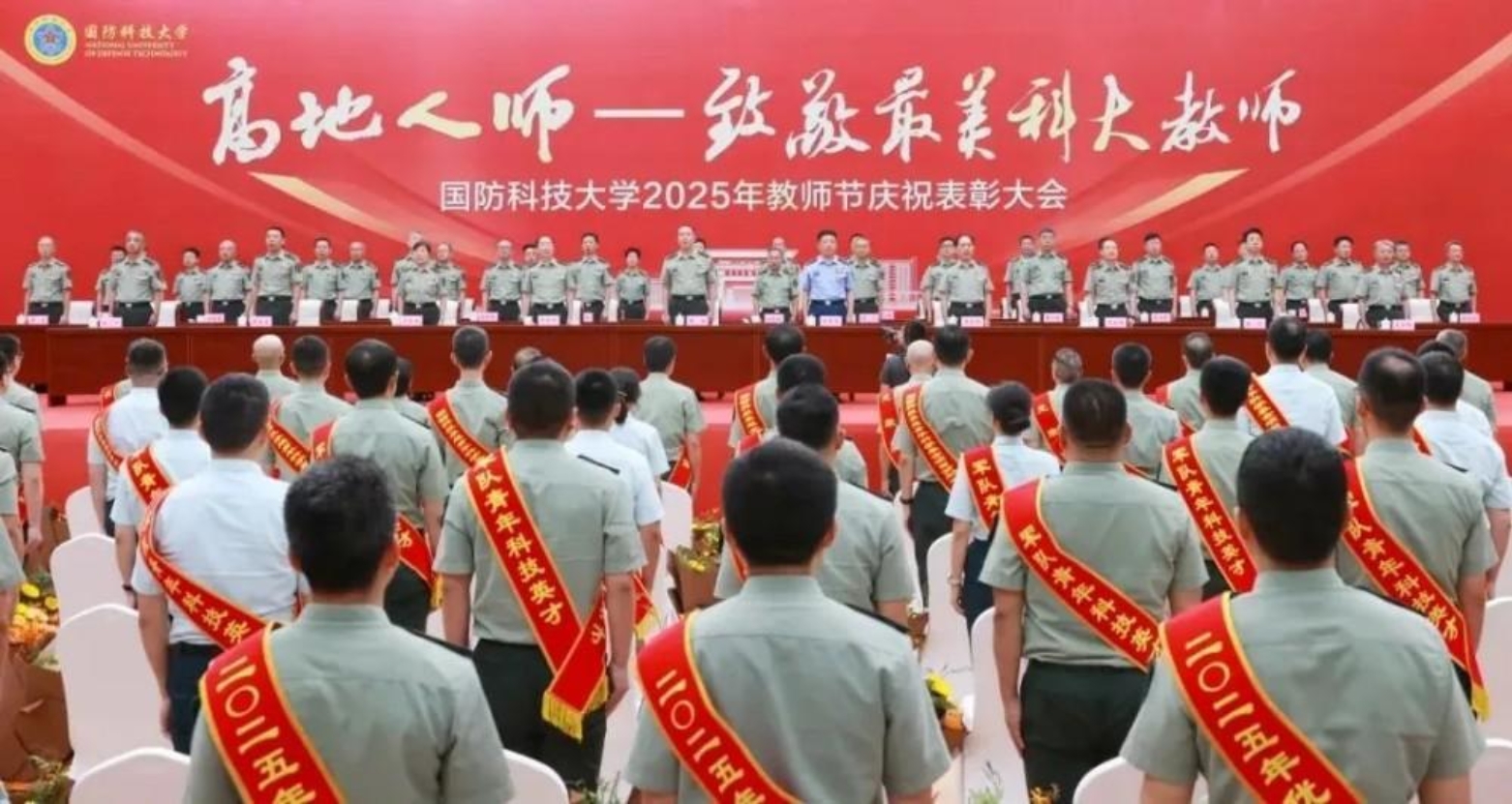 军徽闪耀见证奋斗荣光,师道永续书写高地芳华。9月10日上午,beat365平台唯一官网召开“高地人师——致敬最美科大教师”2025年教师节庆祝表彰大会,隆重庆祝第41个教师节。学校在职两院院士及长沙校区待遇五级以上专家教授在主席台就座,去年教师节以来受奖励表彰教师、光荣退休教师代表等在长沙校区主会场参会。学校校长黎湘、政委陈国强出席大会。