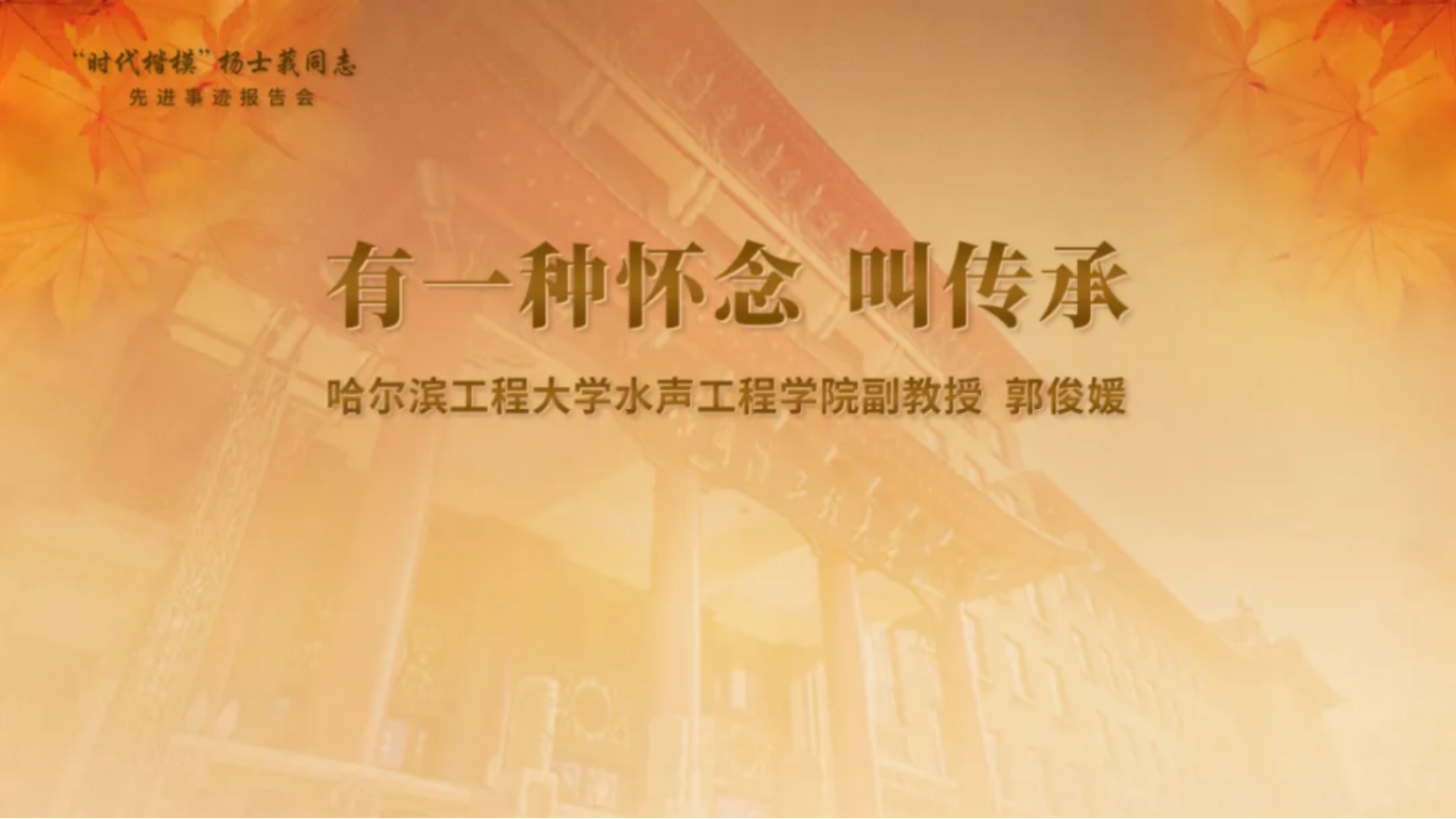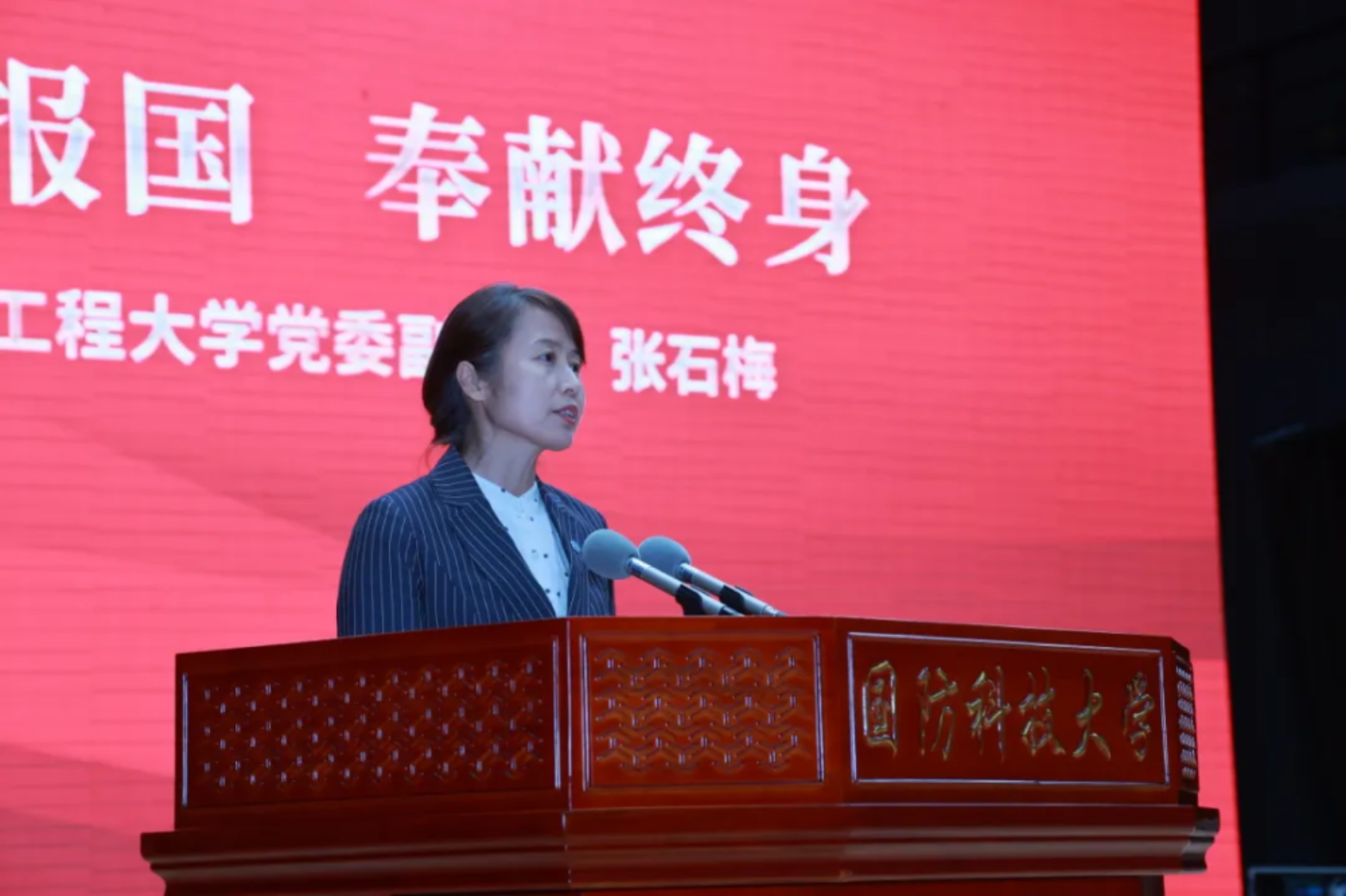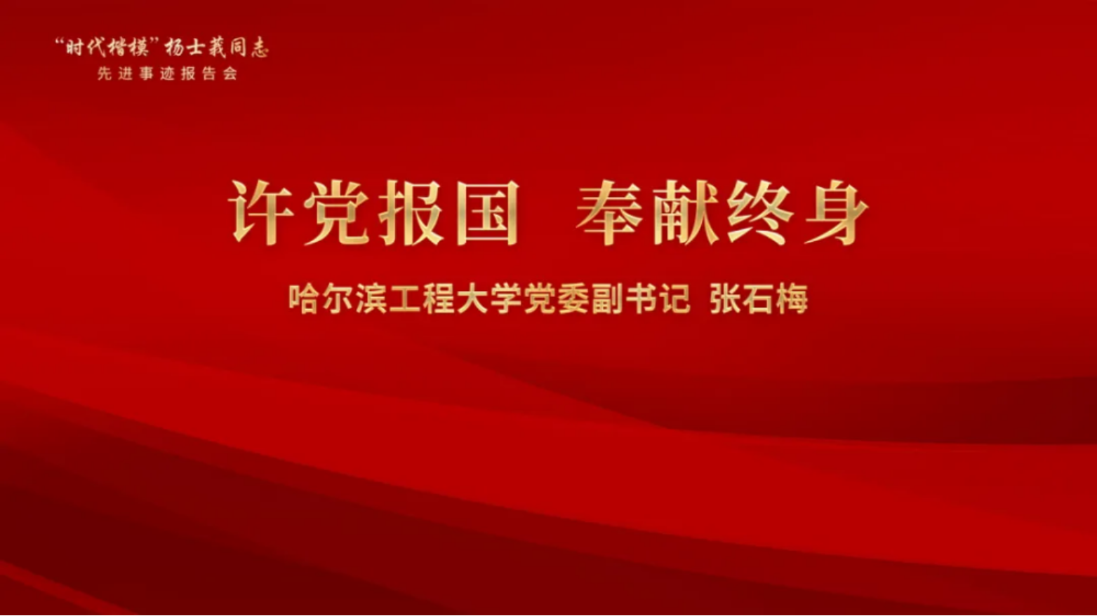 哈尔滨工程大学党委副书记张石梅以《许党报国 奉献终身》为题,讲述了杨士莪院士一生为党为国为强军、为船为海为国防、为人为事为学问的先进事迹,展现了他将忠诚投入祖国万顷波涛、用智慧守护中华万里海疆、化热爱滋育万千“后浪”的光辉形象。