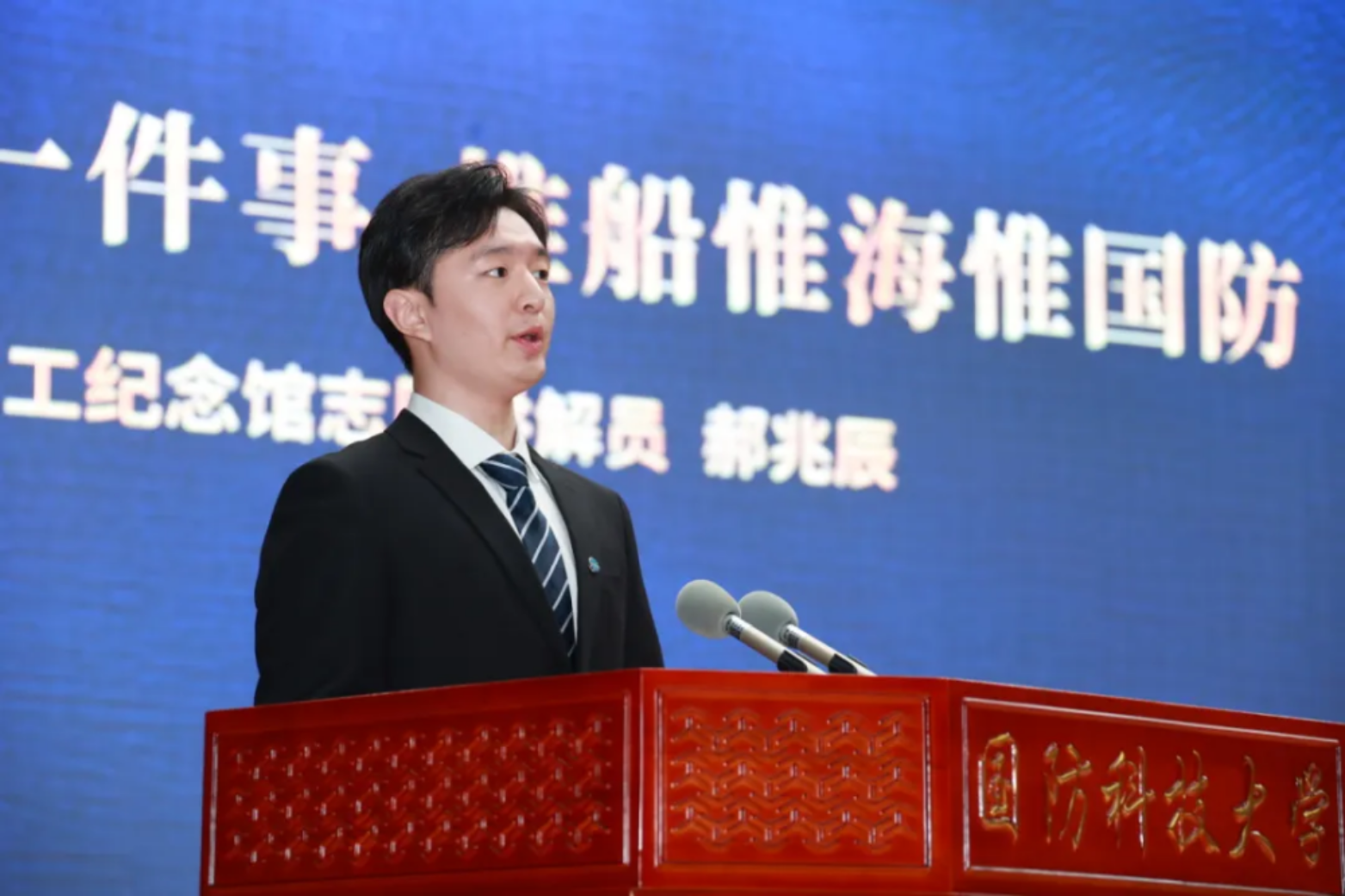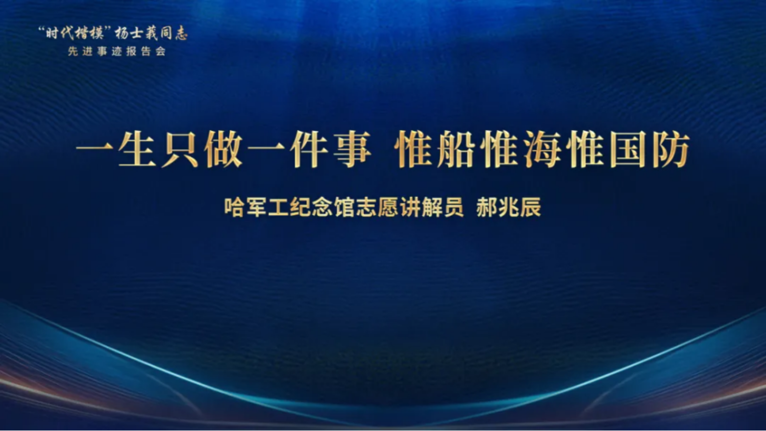 动力与能源工程学院研究生、哈军工纪念馆志愿讲解员郝兆辰同学,以《一生只做一件事 惟船惟海惟国防》为题,讲述了哈军工纪念馆内6件藏品背后的故事,让大家感受到杨士莪院士风雨兼程的艰辛探索、国之工匠的无悔坚守。