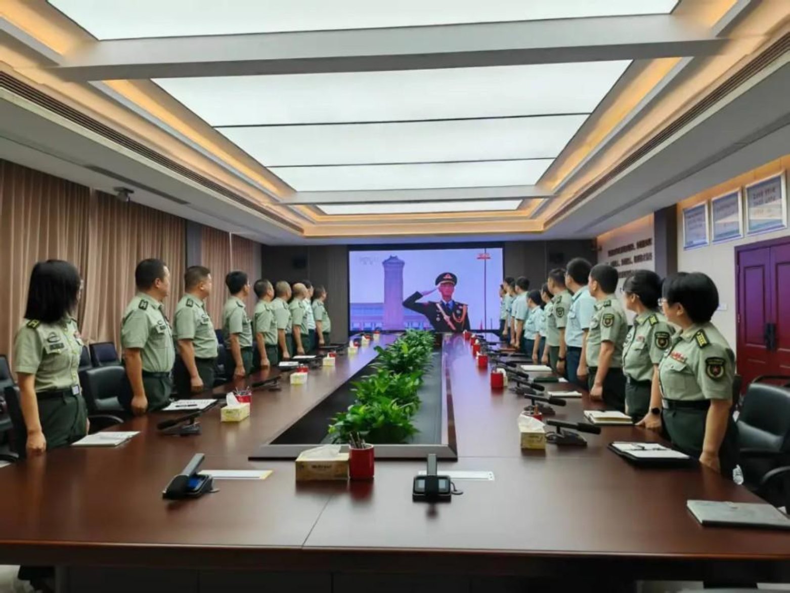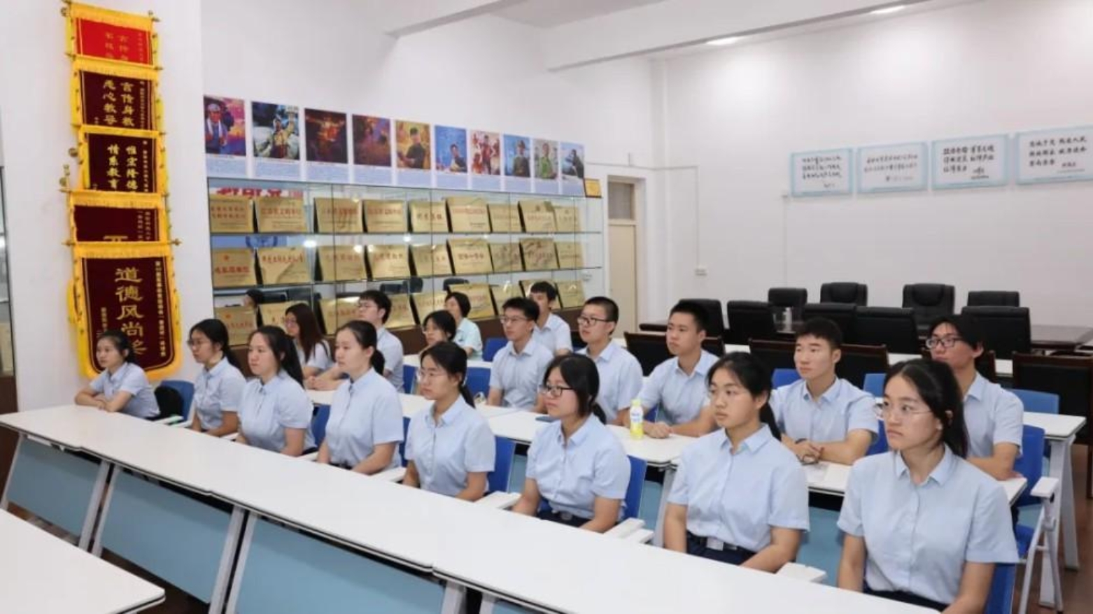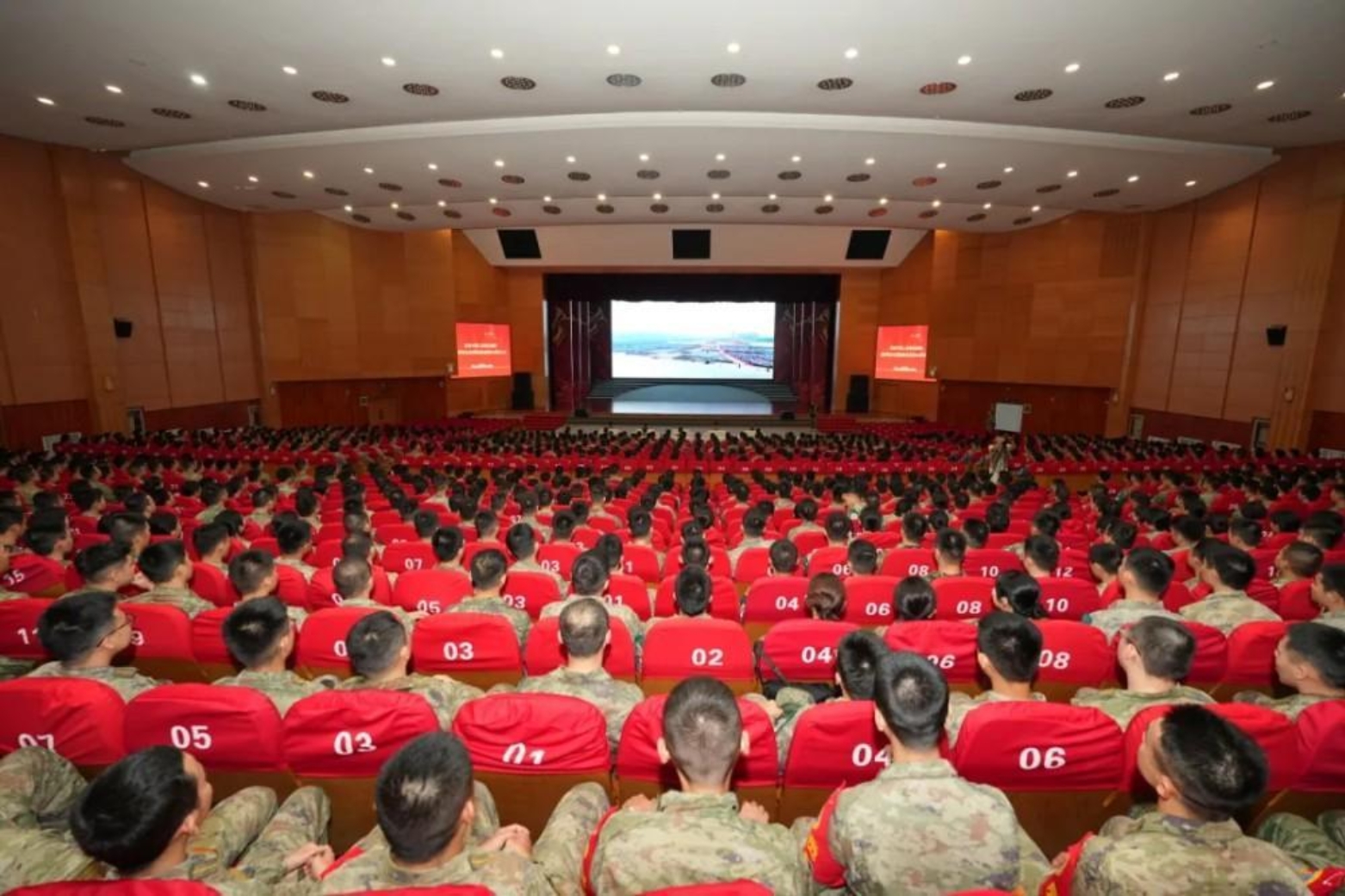 各专业学院的学员们认真观看阅兵盛况,现场气氛庄重而热烈。