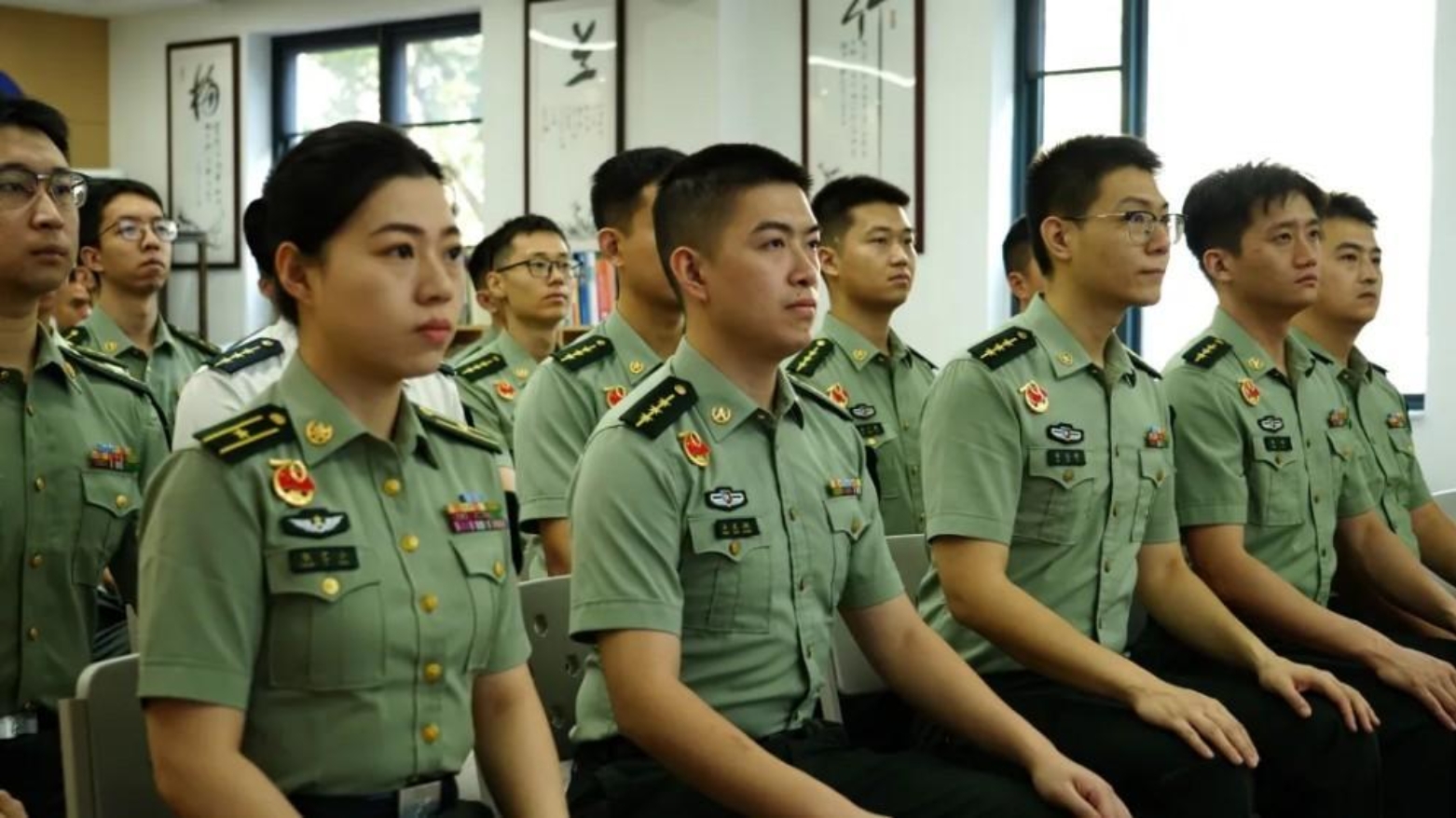 在三号院学术交流中心,2025级全体新学员集中收看习主席重要讲话和阅兵式。“正如习主席所说,中华民族伟大复兴势不可挡,人类和平与发展的崇高事业必将胜利!作为刚刚踏入军校的我们,从老百姓到军人的转变,不仅是身份的转变,更是崇高使命的接续传承。我们要勤奋学习、刻苦锻炼,为强军兴国贡献自己的智慧和力量。”新学员赵冯正轩语气坚定地说。