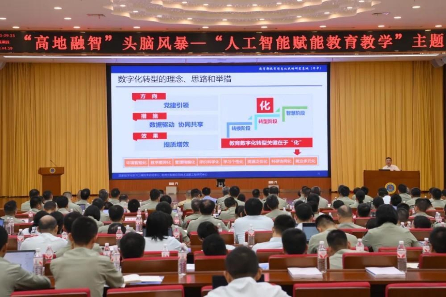 为积极推动人工智能和教育深度融合,促进教育变革创新,根据校党委理论学习中心组年度主题授课计划安排,近日,学校在长沙校区一号院学术成果馆开展“高地融智—人工智能赋能教育教学”头脑风暴活动。校长黎湘、政委陈国强出席活动。