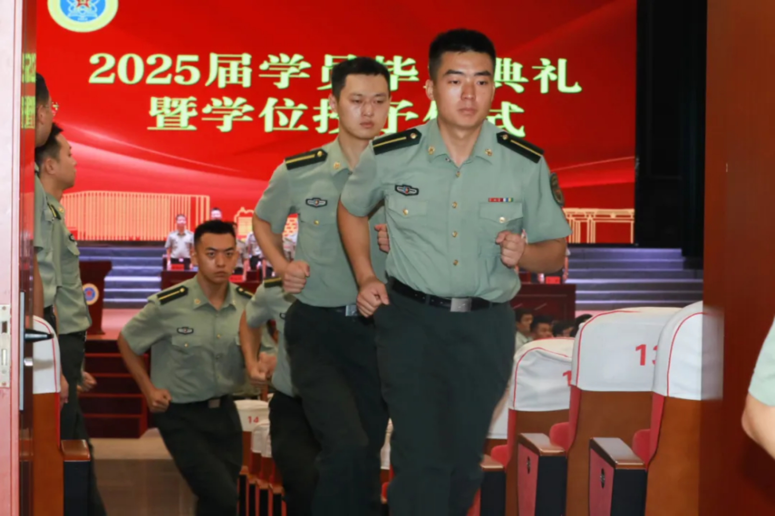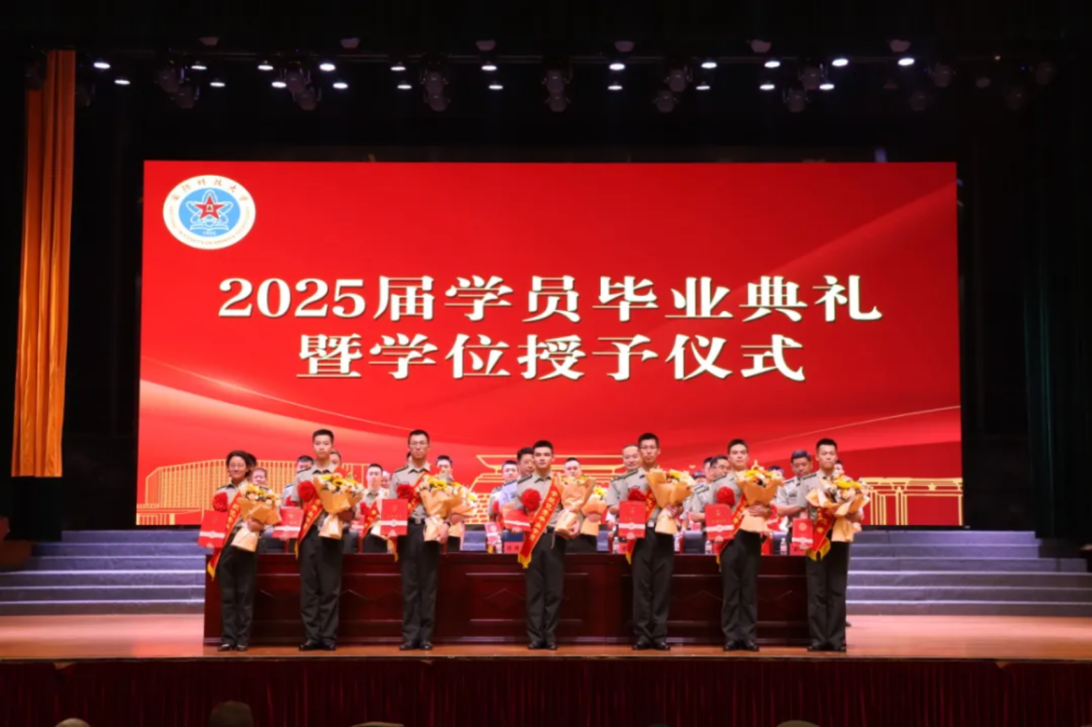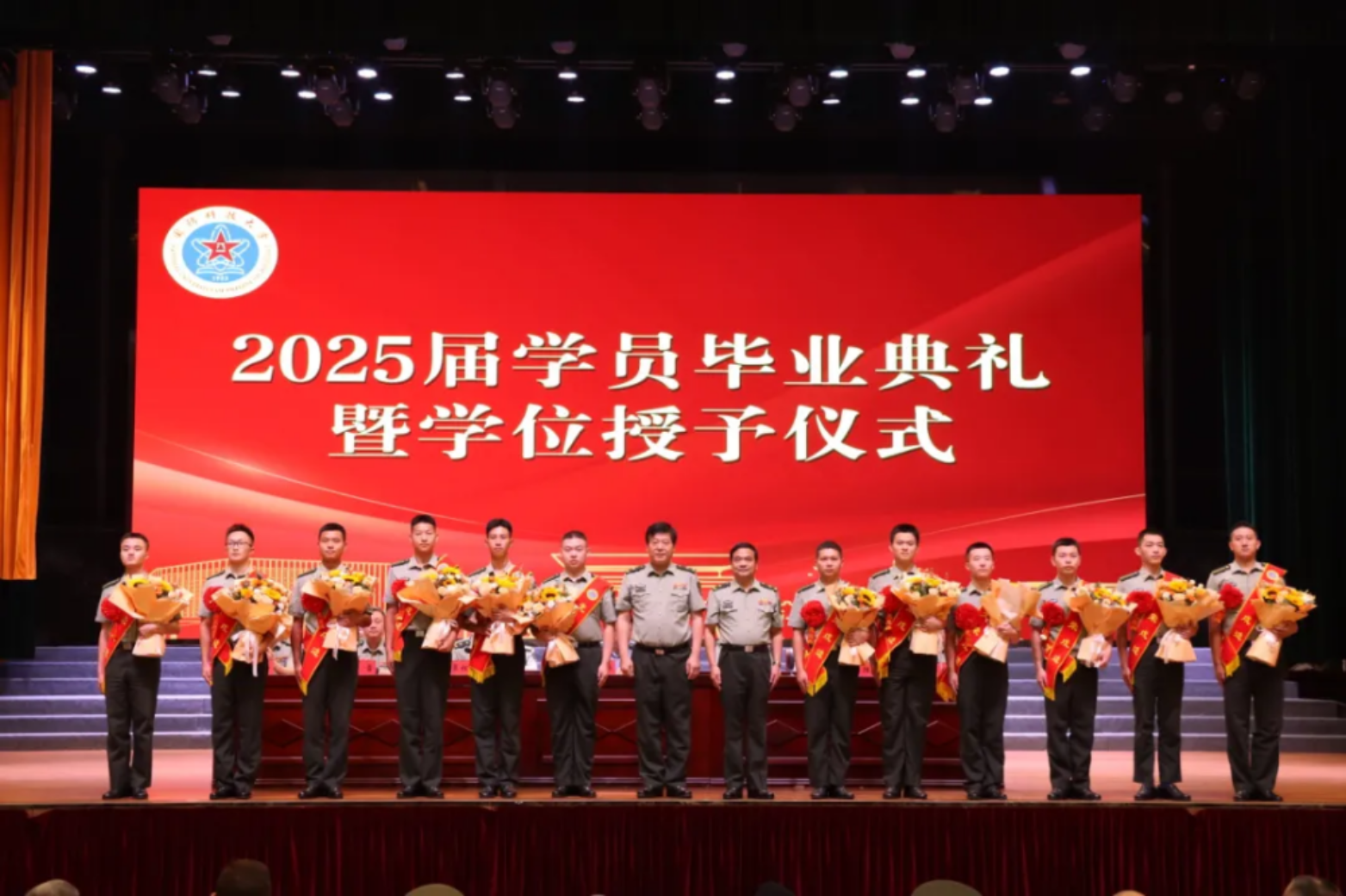学院领导,机关和基层各单位领导,毕业队干部及班主任、政治辅导员、教员代表齐聚一堂,为毕业学员出征壮行;学员亲友受邀观礼,共同见证这一荣耀时刻。大礼堂内,气氛庄重而热烈,激情与期待交织。
