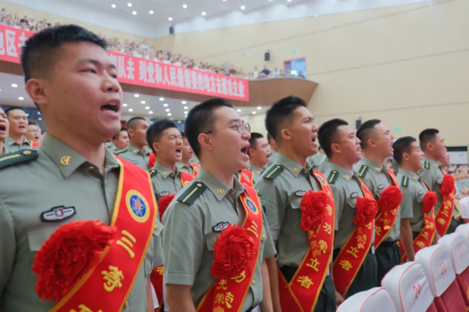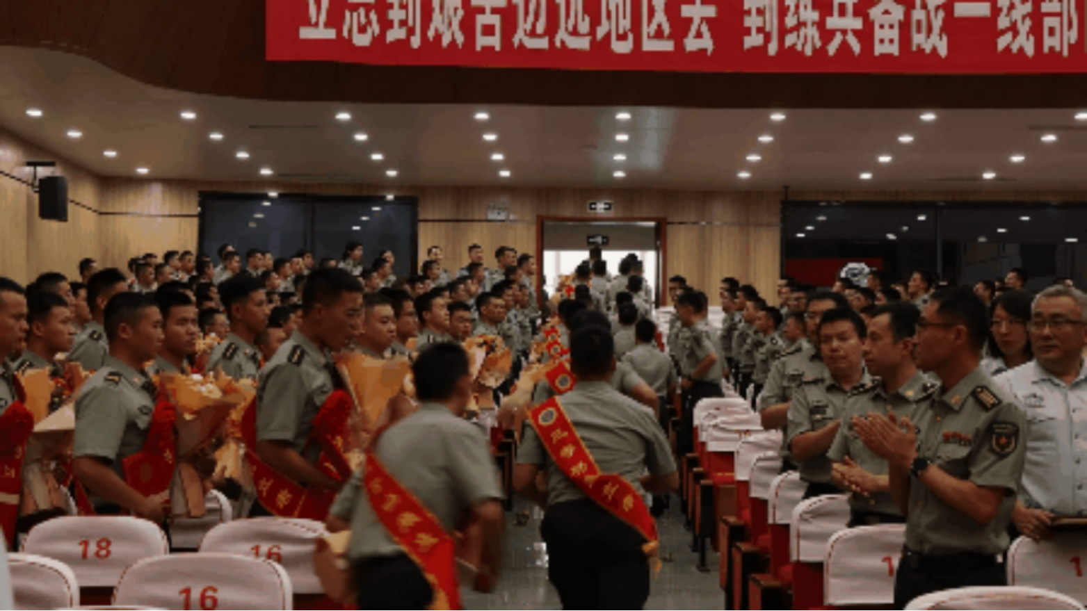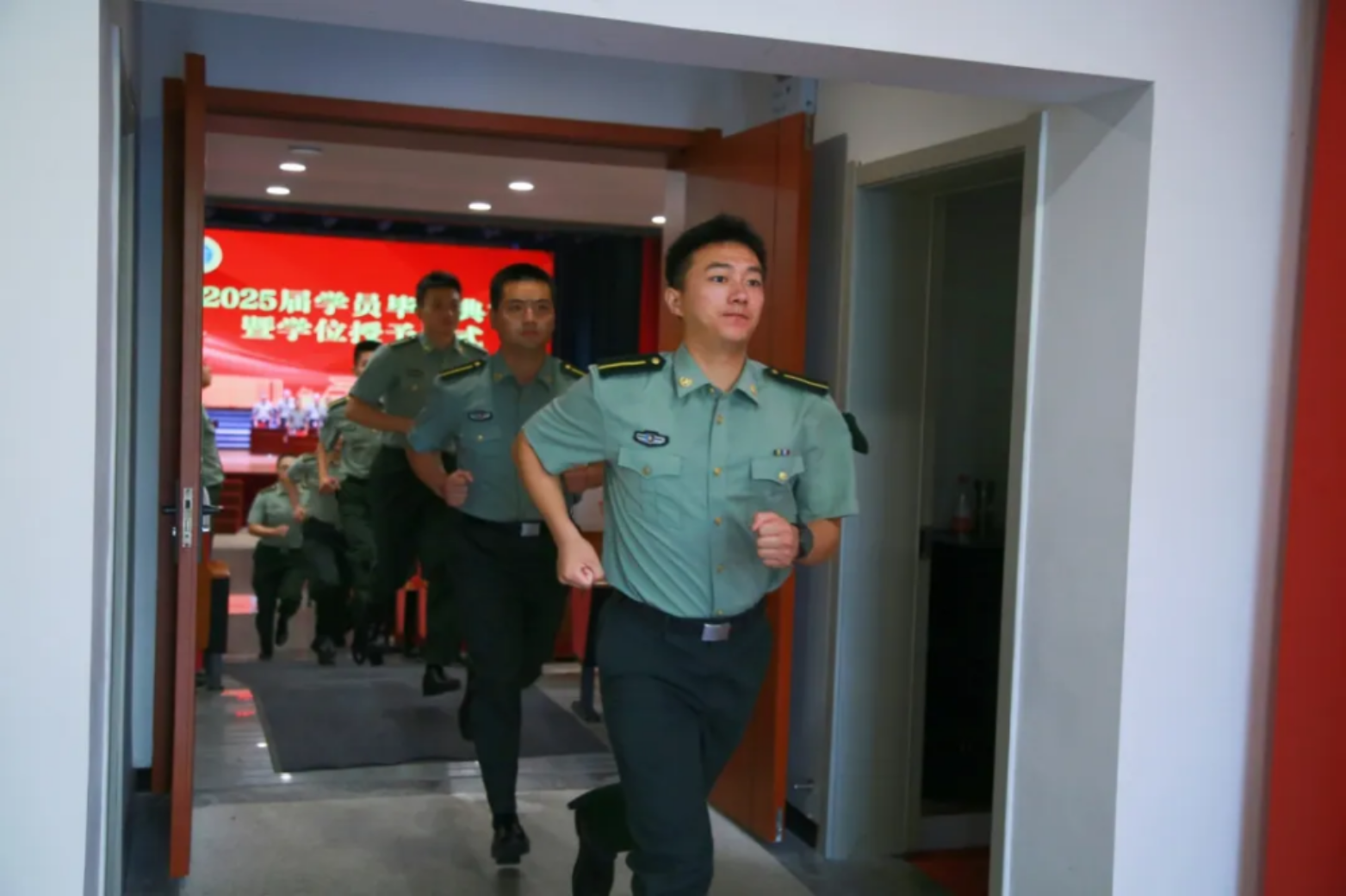 学院领导,机关和基层各单位领导,毕业队干部及班主任、政治辅导员、教员代表齐聚一堂,为毕业学员出征壮行;学员亲友受邀观礼,共同见证这一荣耀时刻。大礼堂内,气氛庄重而热烈,激情与期待交织。