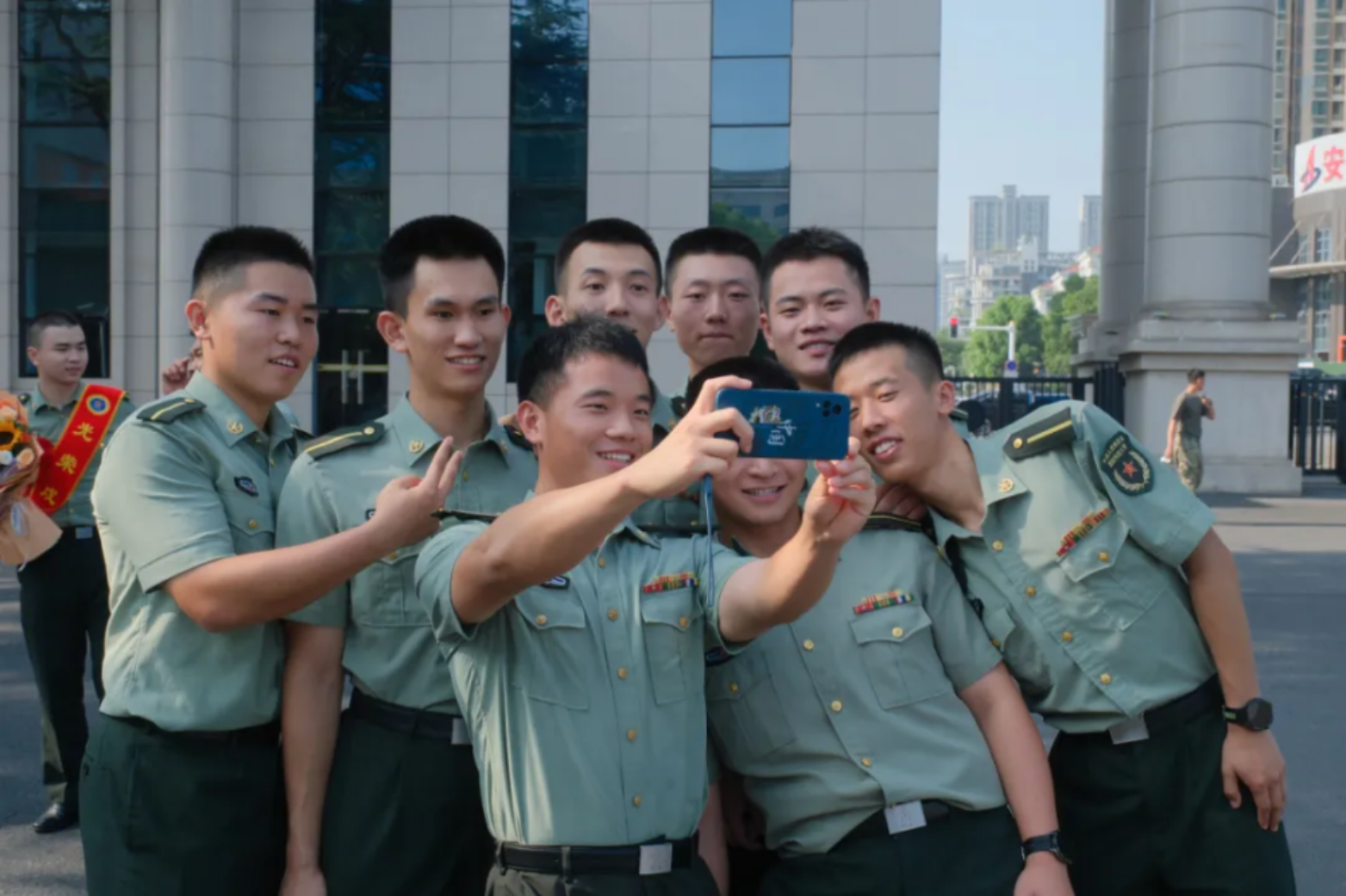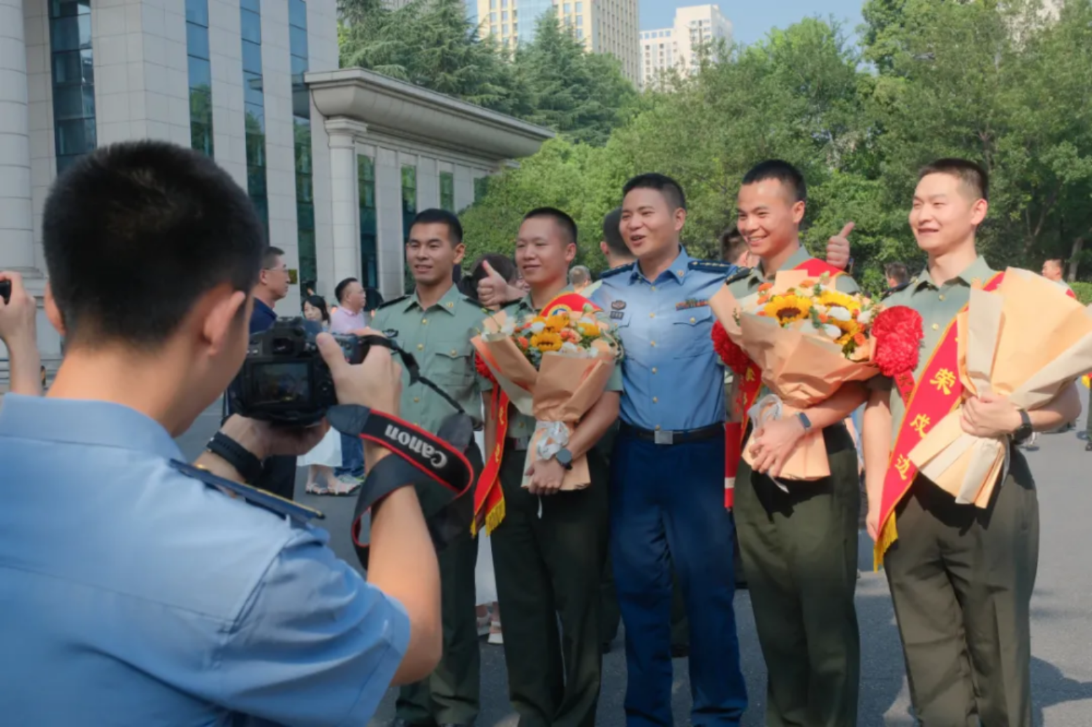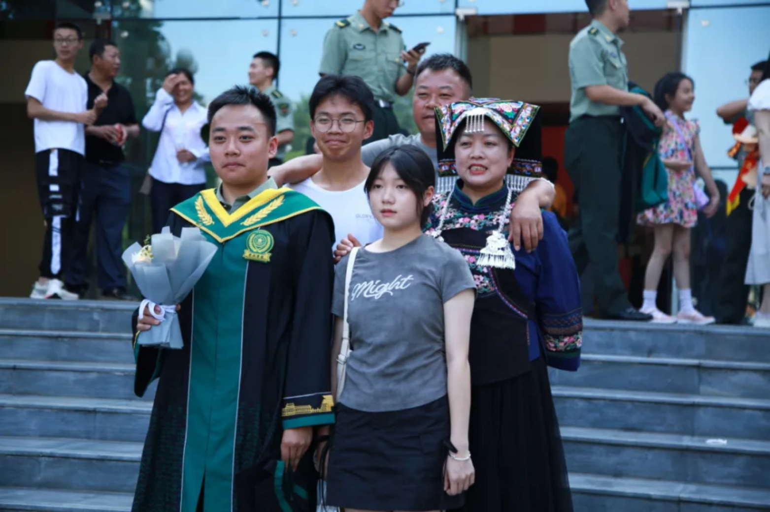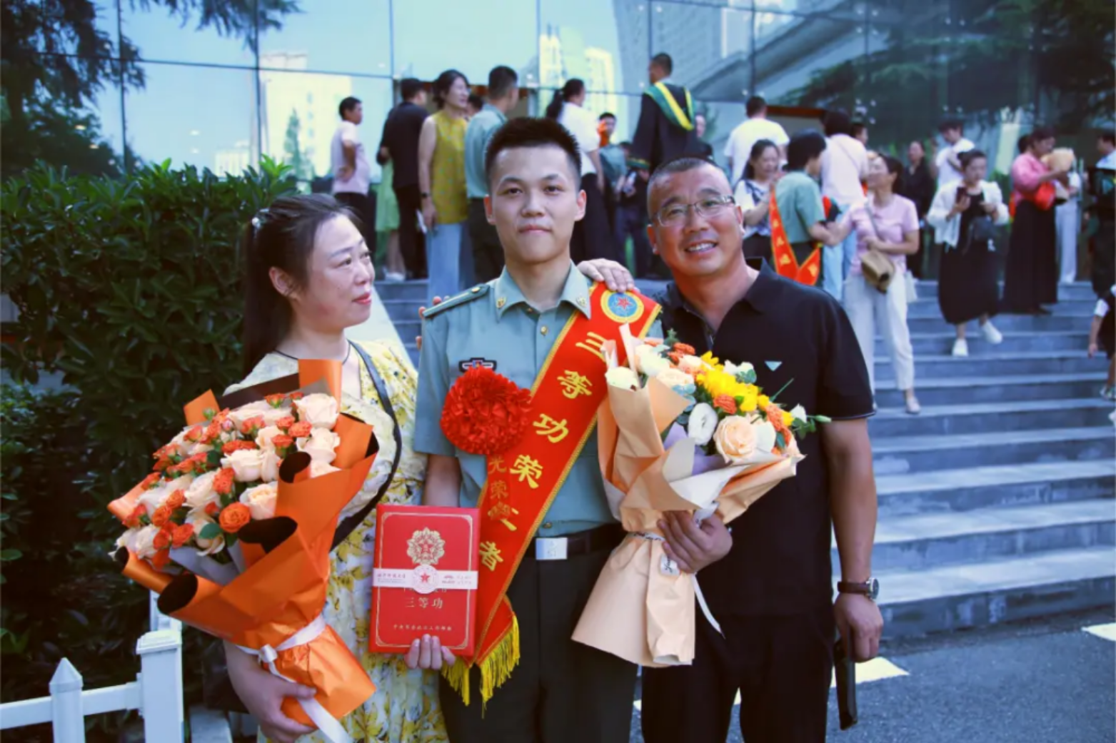 青春与家国相融,使命与荣光同在。分别在即,出征学子纷纷与校院领导和家长合影留念。