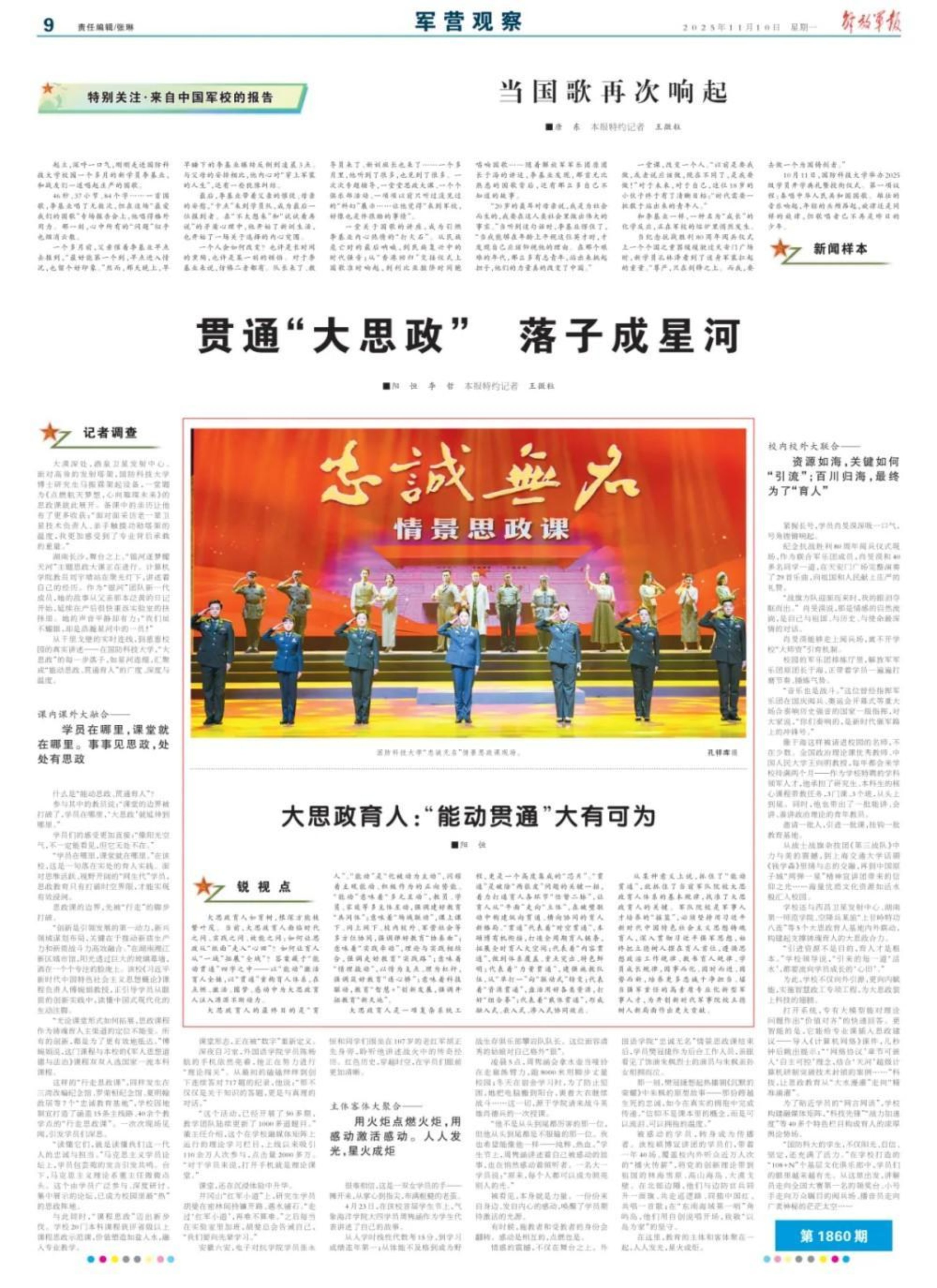 《解放军报》整版聚焦 | 贯通“大思政” 落子成星河