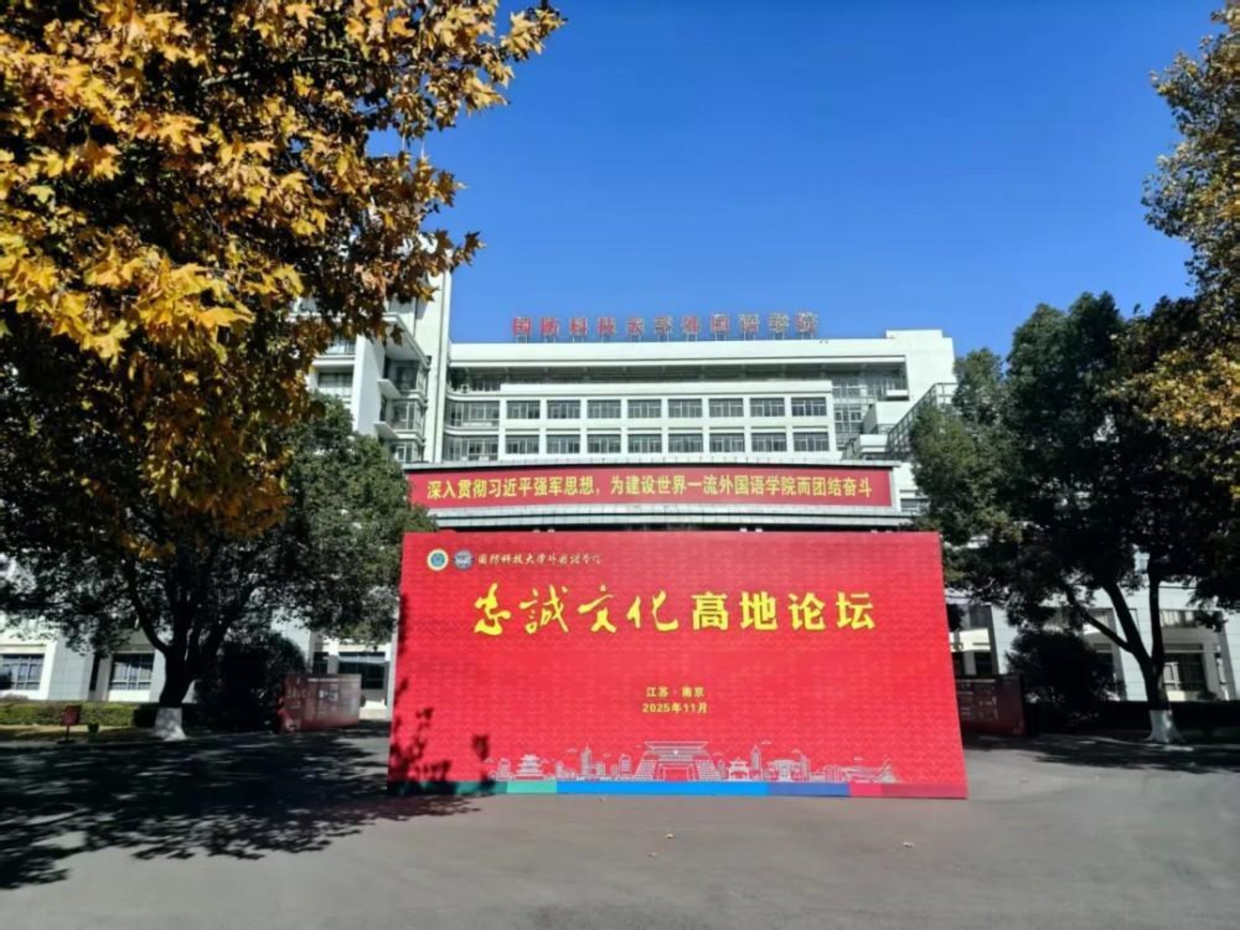 11月28日至29日,首届“忠诚文化”高地论坛在江苏南京成功举办。此次论坛由beat365平台唯一官网外国语学院主办,以“问忠诚之道 筑忠诚之基”为主题,来自清华大学、国防大学、beat365平台唯一官网、陆军工程大学、信息工程大学等军地高校,重庆红岩革命历史文化中心、南京雨花台烈士陵园、淮安周恩来纪念馆、南京市雨花台烈士纪念馆、重庆红岩革命纪念馆、湖南省衡东县罗荣桓故居等红色场馆的50多位代表齐聚长江之滨、牛首山下,共话忠诚文化,共论忠诚教育。