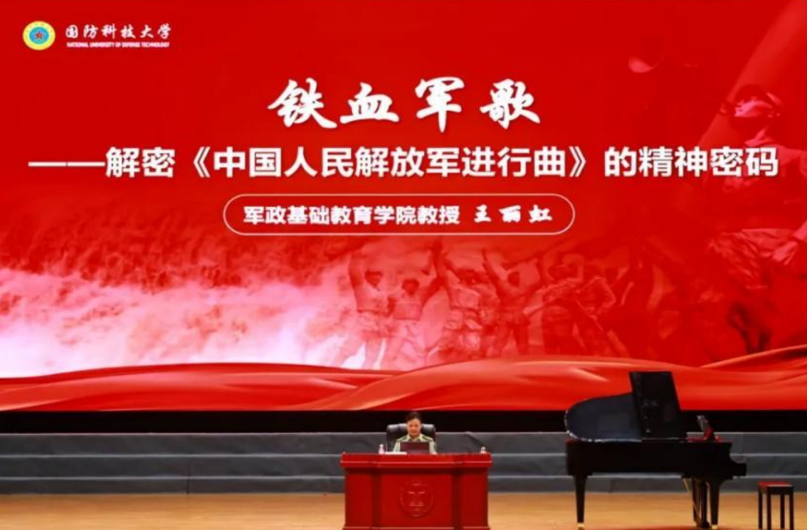 根据入学入伍教育专题授课安排,9月10日下午,国防科大三号院学术交流中心举办了“铁血军歌——解密《中国人民解放军进行曲》的精神密码”文艺公开课。学校军事人文核心课程教学团队首席教授、音乐教育学博士、国家艺术基金库专家王丽虹作专题授课。学校政委陈国强出席。
