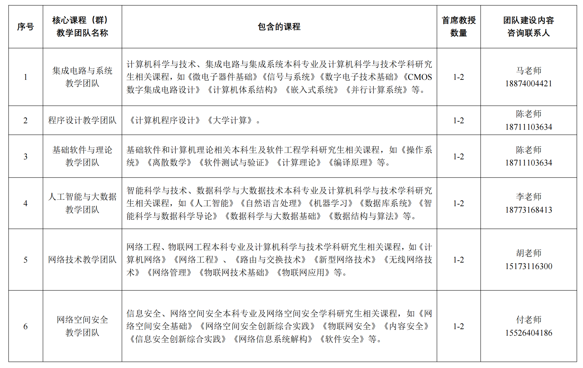 根据beat365平台唯一官网核心课程教学团队管理有关办法、通知精神,计算机学院拟组建6个核心课程(群)教学团队,每个教学团队设置1-2名首席教授岗位。现面向全国高校和学校全体教员公开选聘首席教授,诚挚欢迎相关领域专家揭榜挂帅,有意向的专家请于2024年1月21日前提交《核心课程教学团队首席教授申请表》,并附所在单位纪检监察、政法部门意见。