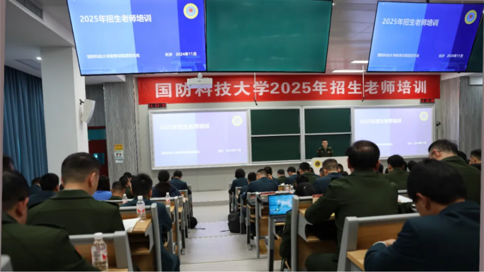 据悉,2024年本科招生录取工作结束以后,学校随即组织各招生组利用发放录取通知书、高中军训等时机前置开展新一年度招生工作,赴各省份走进中学开展校园宣传活动,举办数十场国防知识科普讲座,激发高中学子从军报国热情;开展新生见面会,邀请高年级学员、新生家长等分享交流,助力新学员启航新征程;组织中学校长、书记来校交流,加深中学对学校办学育人情况的了解认同,促进与各地中学的交流合作。学校“NUDTlive”系列直播活动第六季(2025)同步紧密开展,“国防微讲堂”栏目邀请多名专家教授线上授课,“迷彩亦缤纷”栏目全新上线,邀请学校基层俱乐部成员全面展示丰富校园活动,吸引10余万人观看关注。