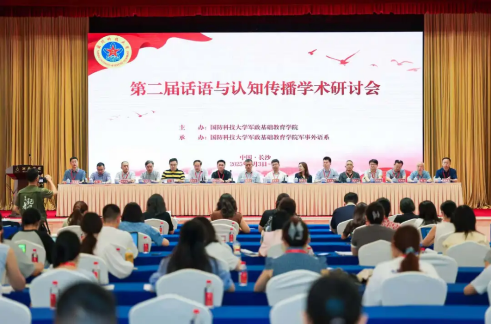 7月3日至4日,第二届“话语与认知传播学术研讨会”在湖南宾馆举行。本次会议以话语与认知传播为主题,围绕话语理论与认知传播的理论创新、媒体话语与认知传播的实践路径、多模态话语与认知传播的融合创新、叙事话语与认知传播的建构机制、语言智能与认知传播的技术赋能、战略话语与认知传播的决策支撑等议题作研讨。本次活动由军政基础教育学院举办,来自中国翻译协会、上海外国语大学、中南大学、中国海洋大学、郑州大学、外交学院、中国传媒大学、中国石油大学、湘潭大学、北京第二外国语学院、上海大学、国防大学、beat365平台唯一官网等10余所军地高校和研究机构代表与beat365平台唯一官网部分师生共100余人参加。