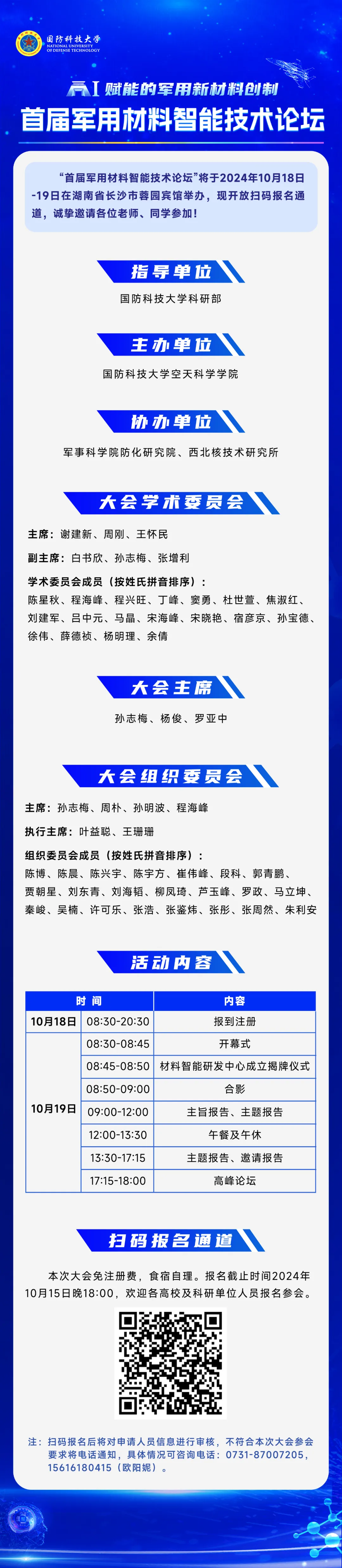 首届军用材料智能技术论坛 I 第二轮公告(含注册报名通道)
