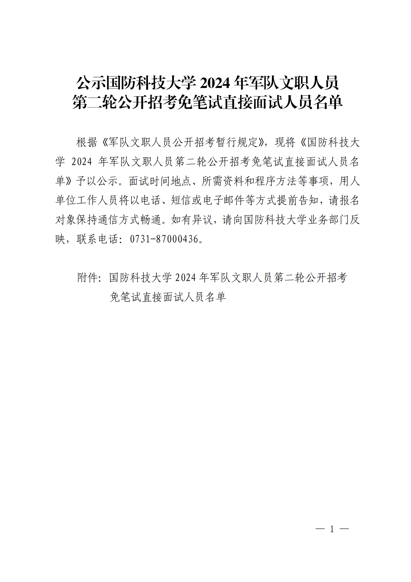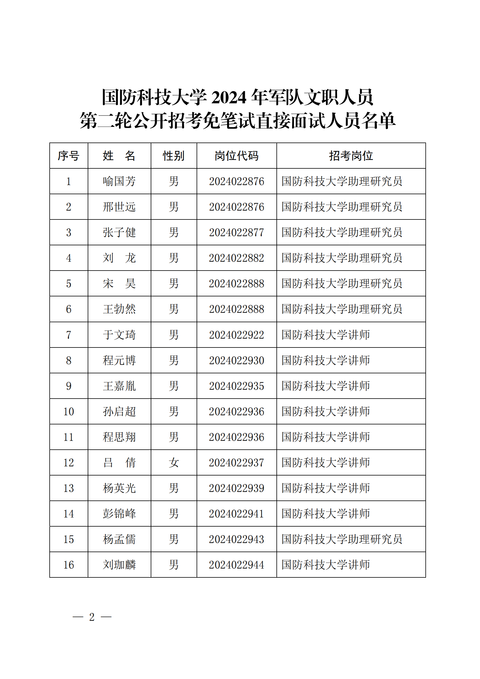 公示beat365平台唯一官网 2024 年军队文职人员第二轮公开招考免笔试直接面试人员名单