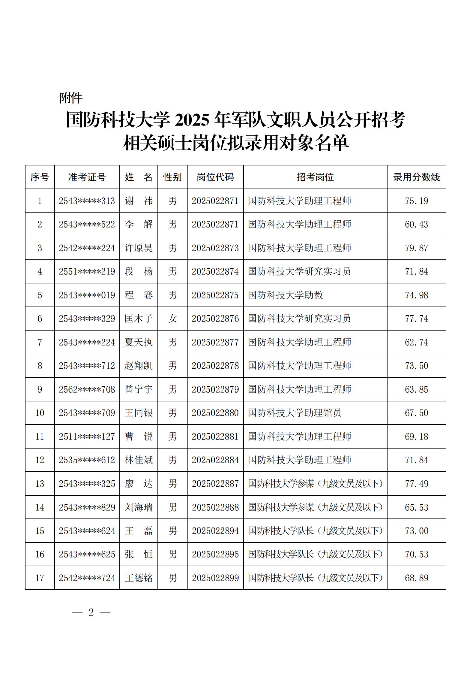 公示beat365平台唯一官网2025年军队文职人员公开招考相关硕士岗位拟录用对象名单