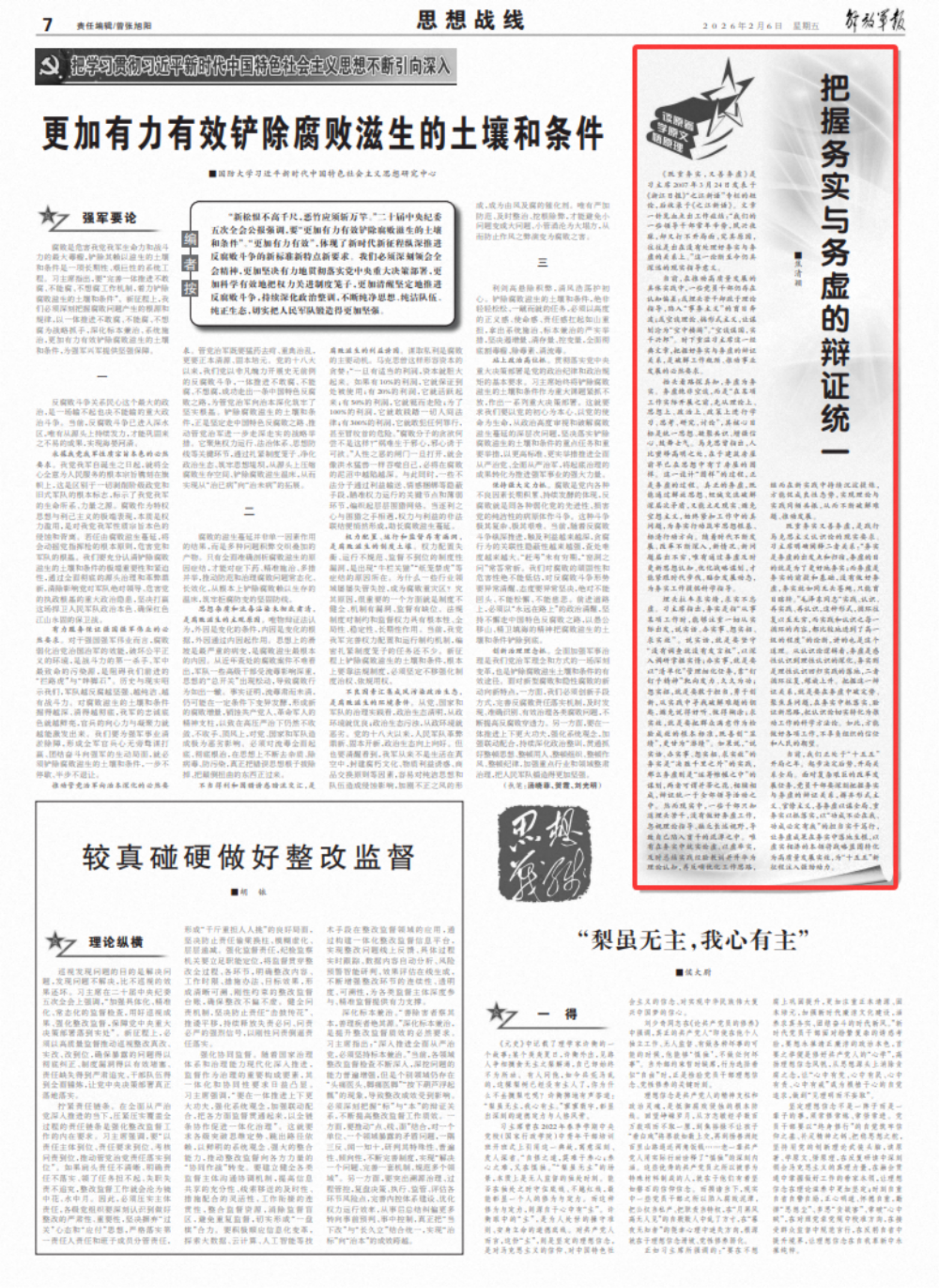 《解放军报》刊发丨把握务实与务虚的辩证统一