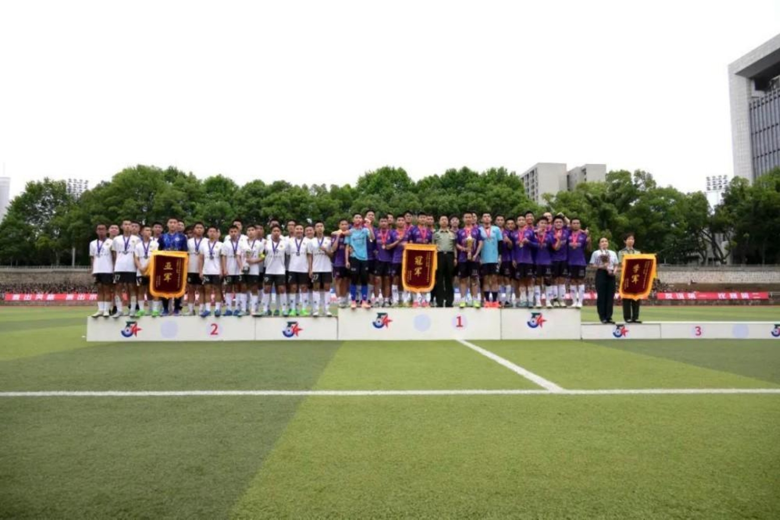 闭幕式上,学校体育运动指导委员会主任、学校副政委兼纪委书记张战为获奖球队及球员颁奖。研究生院球队荣获冠军,军政基础教育学院球队和外国语学院球队分别获得亚军和季军。