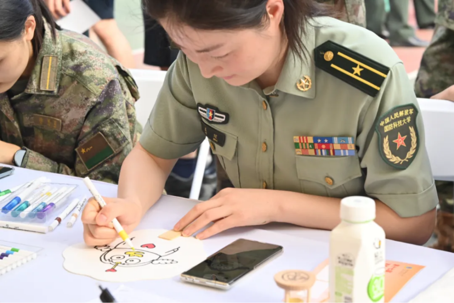 “创意DIY”,空白帆布包与素色团扇成为灵感的画布,学员们的笔触或细腻或奔放,不仅是一次灵感的创作,也是发现自我的过程,更是汲取力量的尝试。