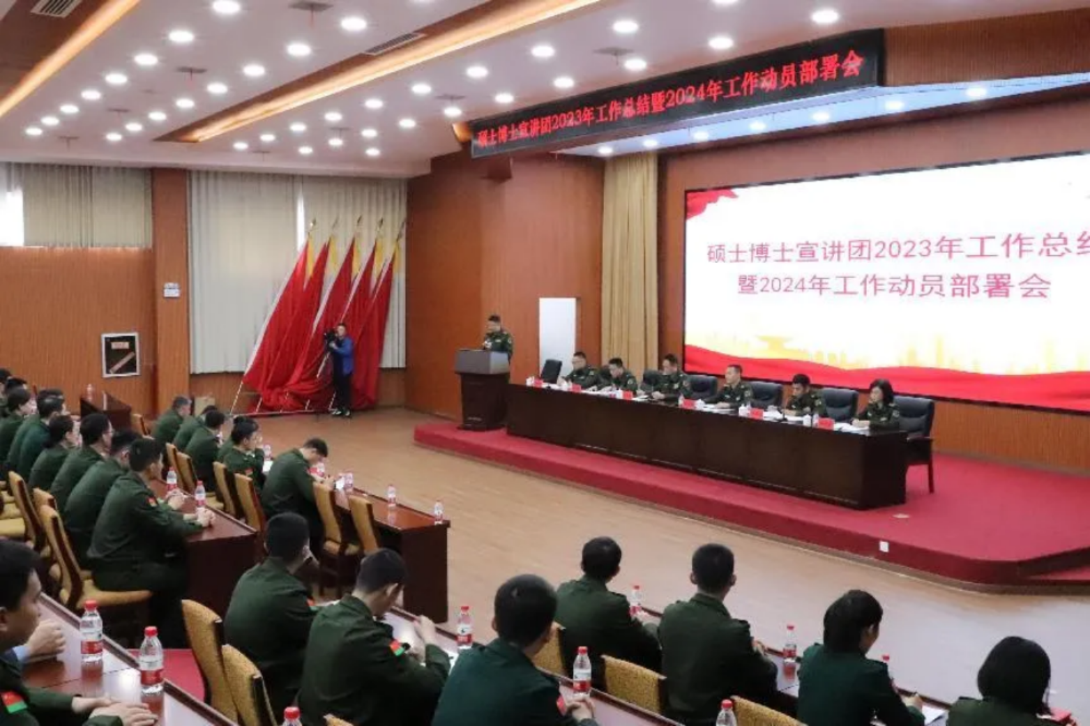 年初,研究生院组织召开宣讲团2023年工作总结暨2024年工作动员部署会。会上表彰上年度先进个人,宣布新进成员名单,为宣讲团2024年度特聘专家颁发聘书,并首次将年度宣讲目标增至40场。