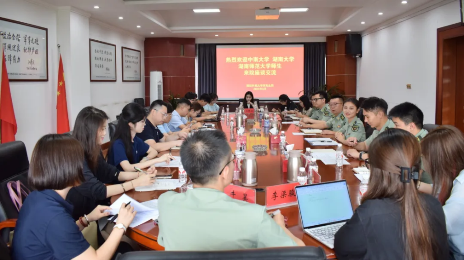 深入部队基层的同时,宣讲团还积极加强军地联系,首次联合中国人民大学“未来学者”讲师团赴基层部队开展联合宣讲,并组织校际互访。邀请中南大学、湖南大学、湖南师范大学三所本地“双一流”高校的宣讲团代表来校座谈研讨,共话理论宣讲提质增效。
