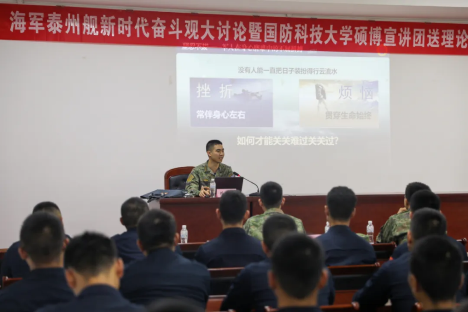 在北部边疆,宣讲团成员与基层官兵一道开展“同升一面旗、共走巡逻路、同描中国红、共唱一首歌”系列活动,亲身感受了战友们“戍守北极砺精兵”的坚定信念。“角屿岛,近金门,东南海域第一哨;海防前线,英雄之岛,岁月见证烽火燎……”来到南部海岛,宣讲团成员用说唱方式揭开宣讲序幕,歌颂“以岛为家,以苦为荣”的角屿精神。一场场生动精彩的理论分享,激发了基层官兵学习理论的浓厚热情。