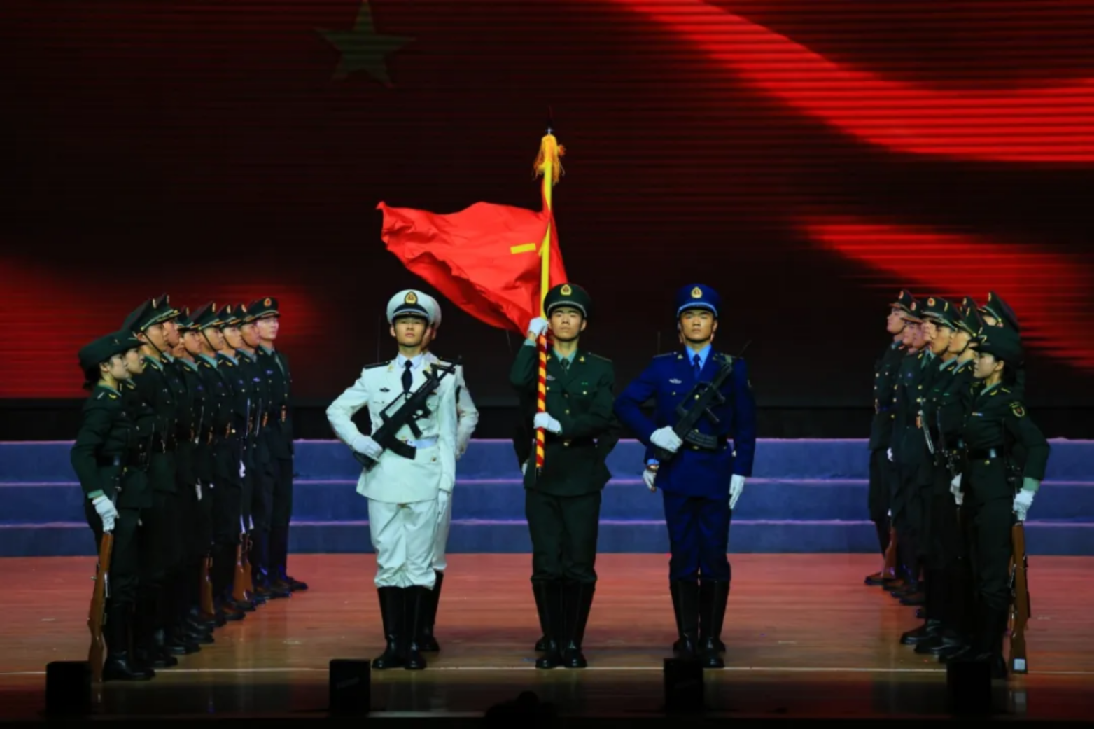 诗朗诵《强军志·烽燧铭》让“秦月清光”与“迷彩织纹”交相辉映,在“铜虎符烙青云志”的精神传承中彰显中国军人千年未改的报国丹心。