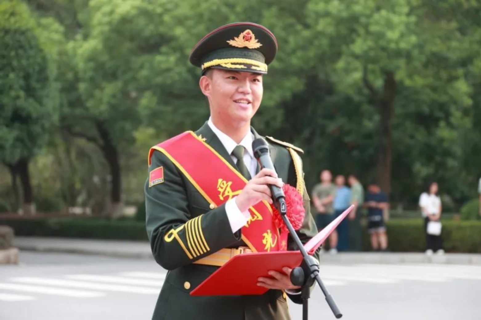三个多月里,我们对着节拍器校准每一个音符,在烈日下练到嘴唇发麻、手臂发酸。我们奏的不只是乐曲,更是中国军人的精气神,是对祖国最赤诚的告白。未来,我会带着这份沉甸甸的荣耀继续前行。无论是在军乐团的日常排练中,还是在校园的各类文化活动里,我都会用心传递军乐力量,让阅兵时的那份热血与赤诚,在青春的校园里不断回响。