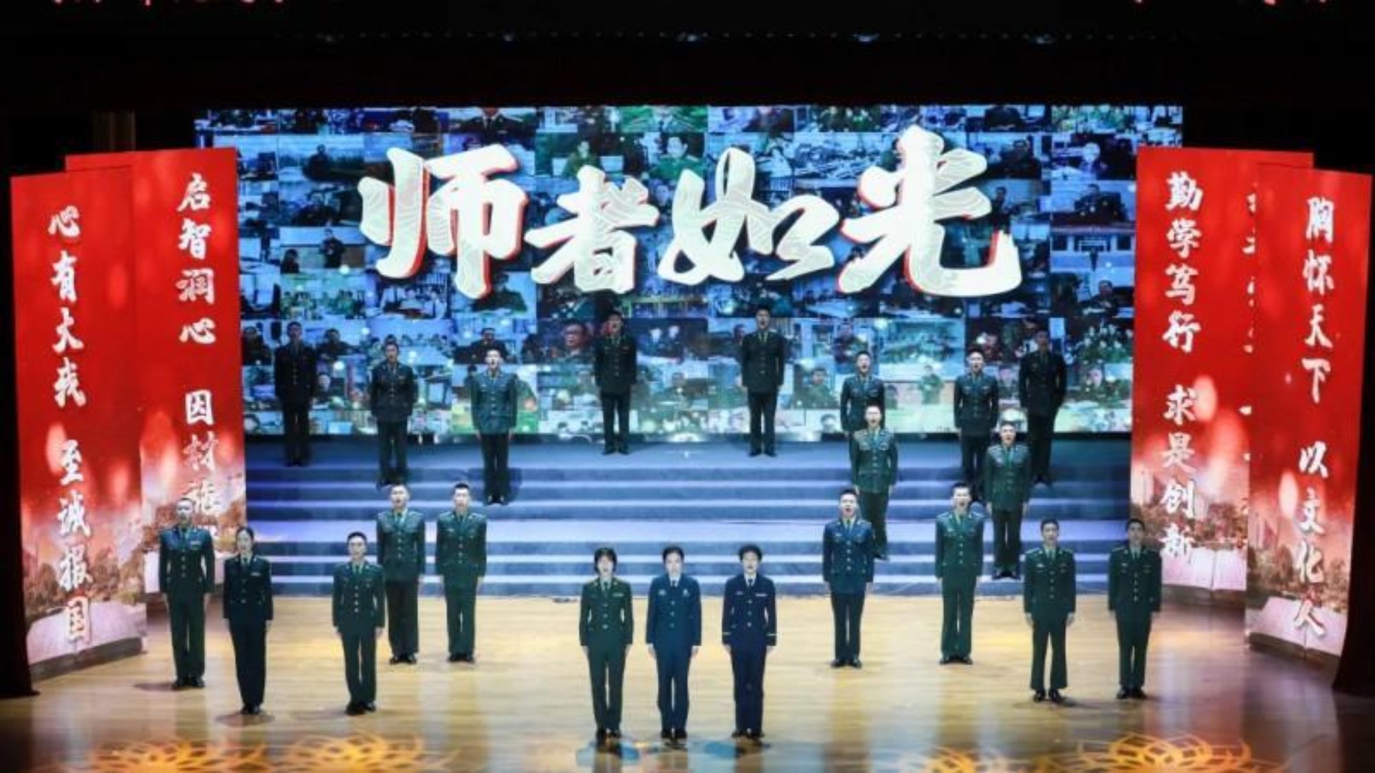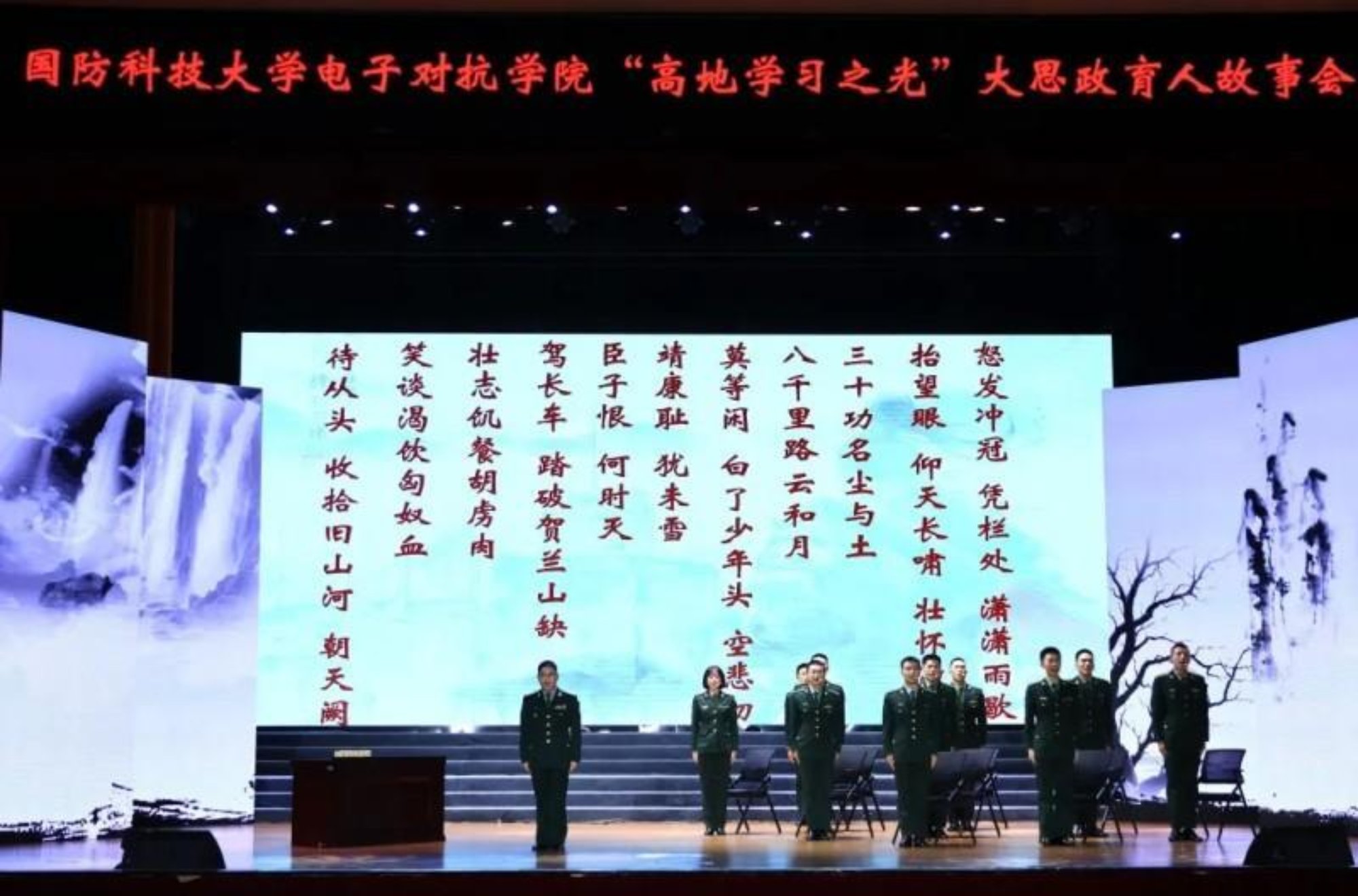 《中国传统文化概论》的课堂被搬上舞台,气势恢宏的诵读声中,军旅诗词中所流淌的文化基因、家国情怀深深注入学员血脉。