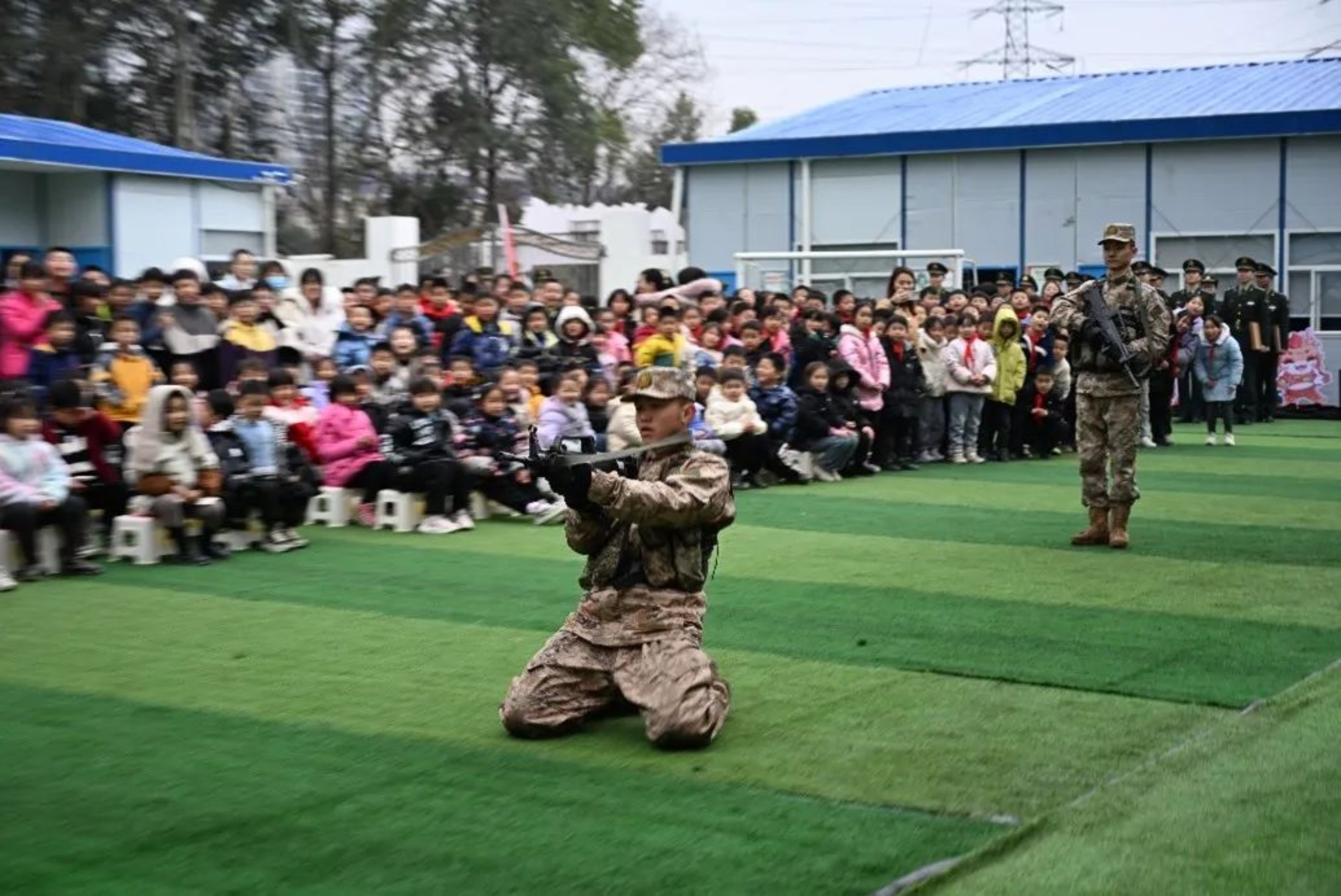 前沿交叉学科学院携手学校第四附属幼儿园举办“大手拉小手,全员学雷锋”活动。上百名幼儿园孩童观摩军营队列训练、叠被子等,参观集体宿舍。此次活动在孩子们心中播下雷锋精神的种子,激励他们学习雷锋精神,以实际行动续写新时代的雷锋故事。