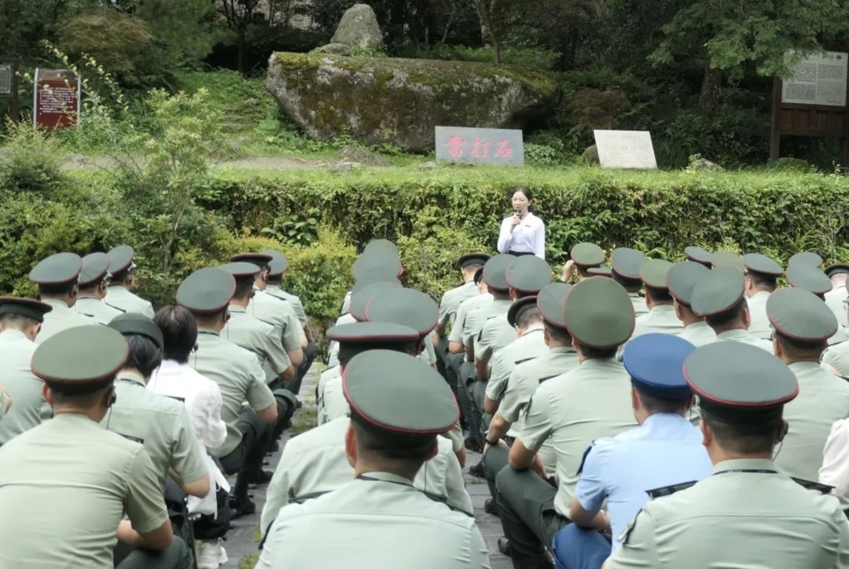 在井冈山革命烈士陵园,参训学员敬献花篮,缅怀先烈大无畏的革命英雄气概;在小井红军烈士墓前,大家集体默哀,聆听烈士们英勇就义的悲壮故事;雷打石见证了“三大纪律”的诞生,立起了人民军队政治整训的精神坐标……参训学员在革命旧址中浸润思想,筑牢信仰根基。
