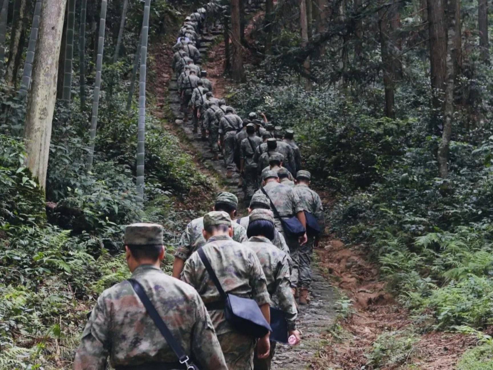 物有甘苦,尝之者识;道有夷险,履之者知。恰逢八一建军节,参训学员重走红军挑粮小道,追寻先辈足迹。有的膝盖有伤也咬紧牙关,坚持走完全程;还有相互帮扶、传授爬山技巧。八一小学老师方庆秋有感而发:“今天走上挑粮小道,脚下是历史,身边是力量,这便是最生动的精神传承。”到达黄洋界时,大家的衣服已被汗水浸透,但此时的士气却很足,“我们徒手上来已经是气喘吁吁、汗流浃背,更何况当年缺衣少穿、敌情紧急的艰苦岁月!”系统工程学院某学员大队政治委员张传磊说道。重走红军路的切身体悟,让 “不忘初心” 四个字在大家心中愈发沉甸甸。