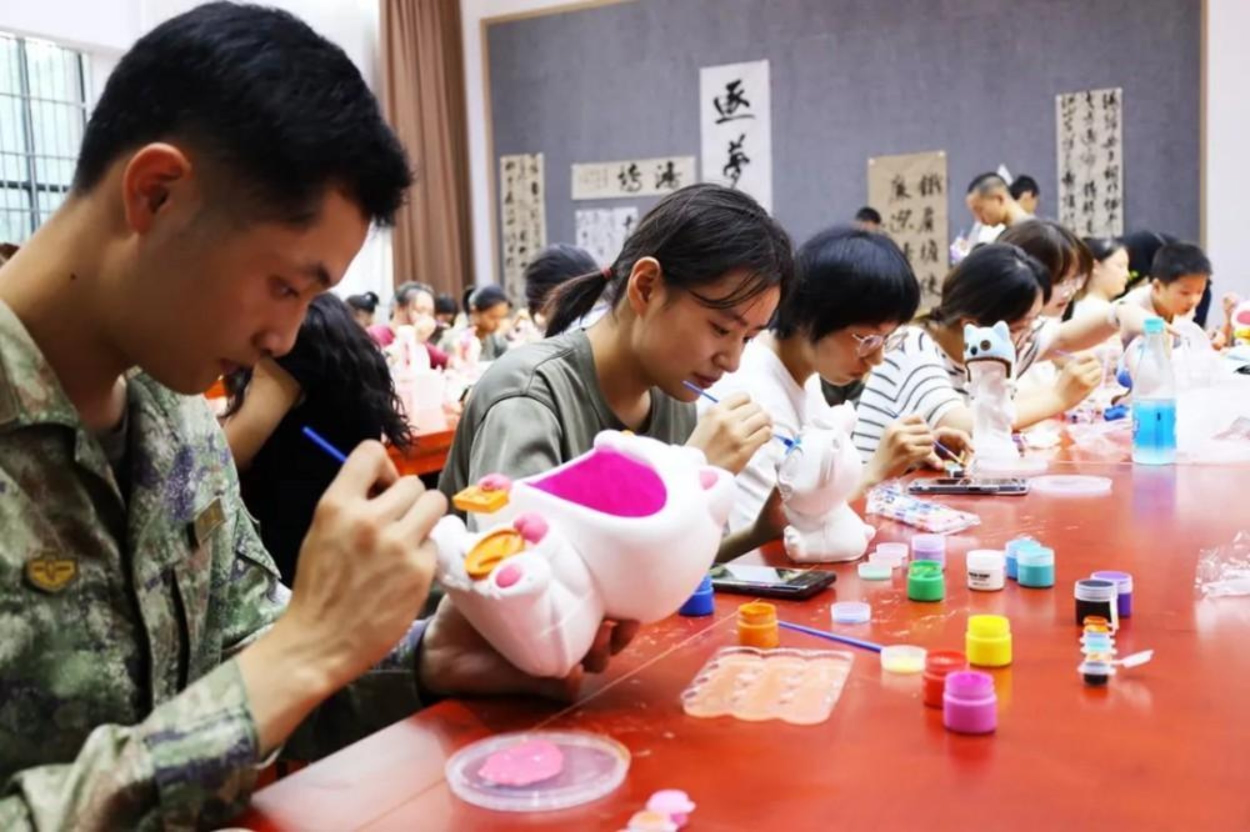 上图:“雅印”绘画俱乐部开展石膏娃娃DIY上色活动。