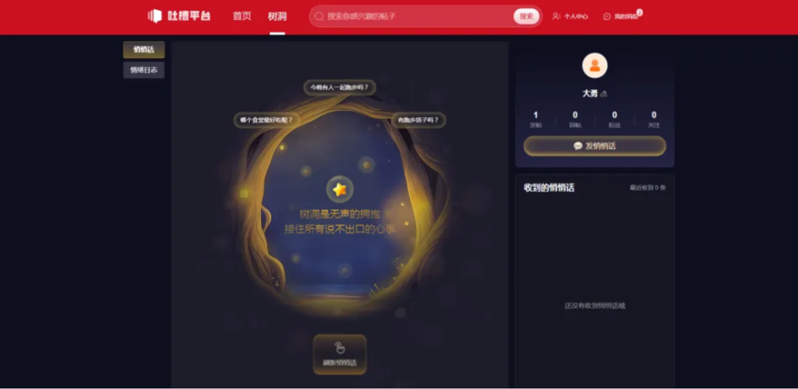 别担心,我们懂你!现在,吐槽平台也开通树洞功能啦!
