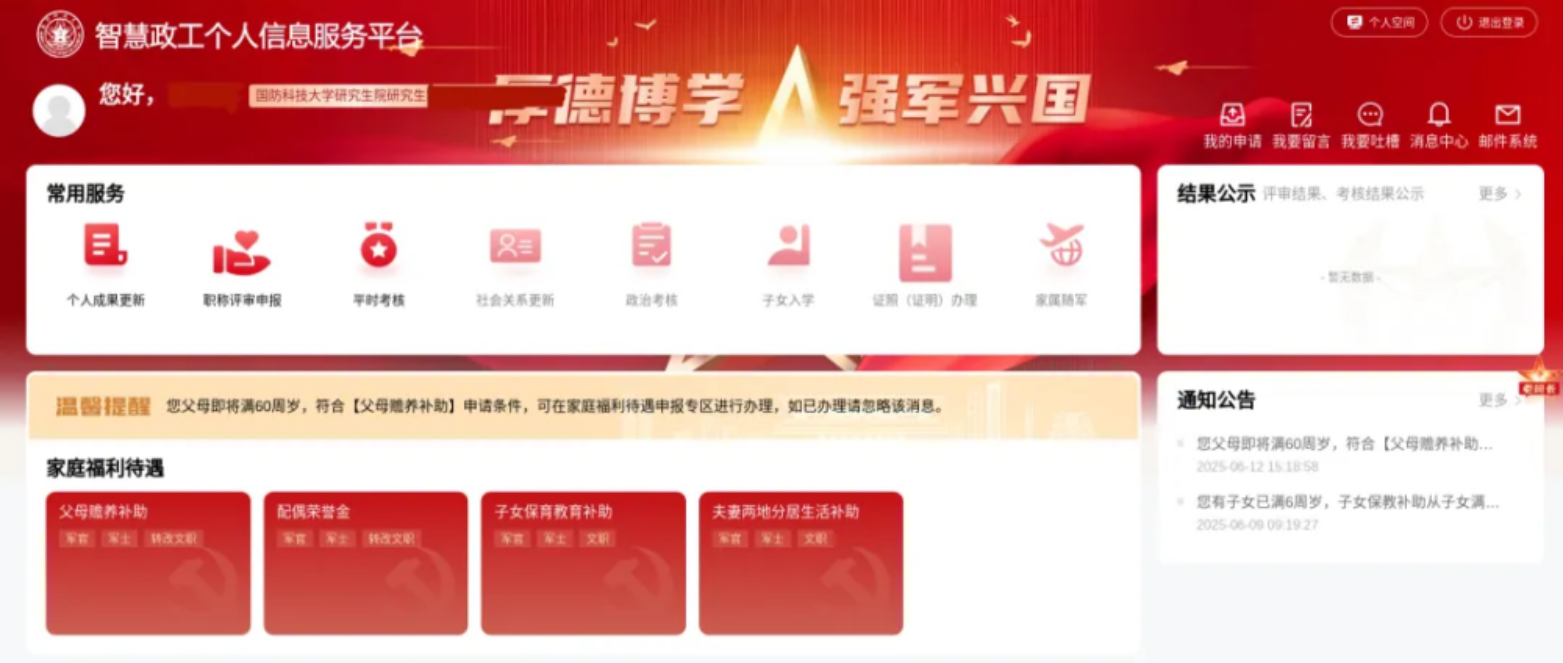 登录校园网“网上办事大厅”,点击“军事人力资源个人信息服务平台”,进入页面后在右上角点击“我要吐槽”就能看到啦!