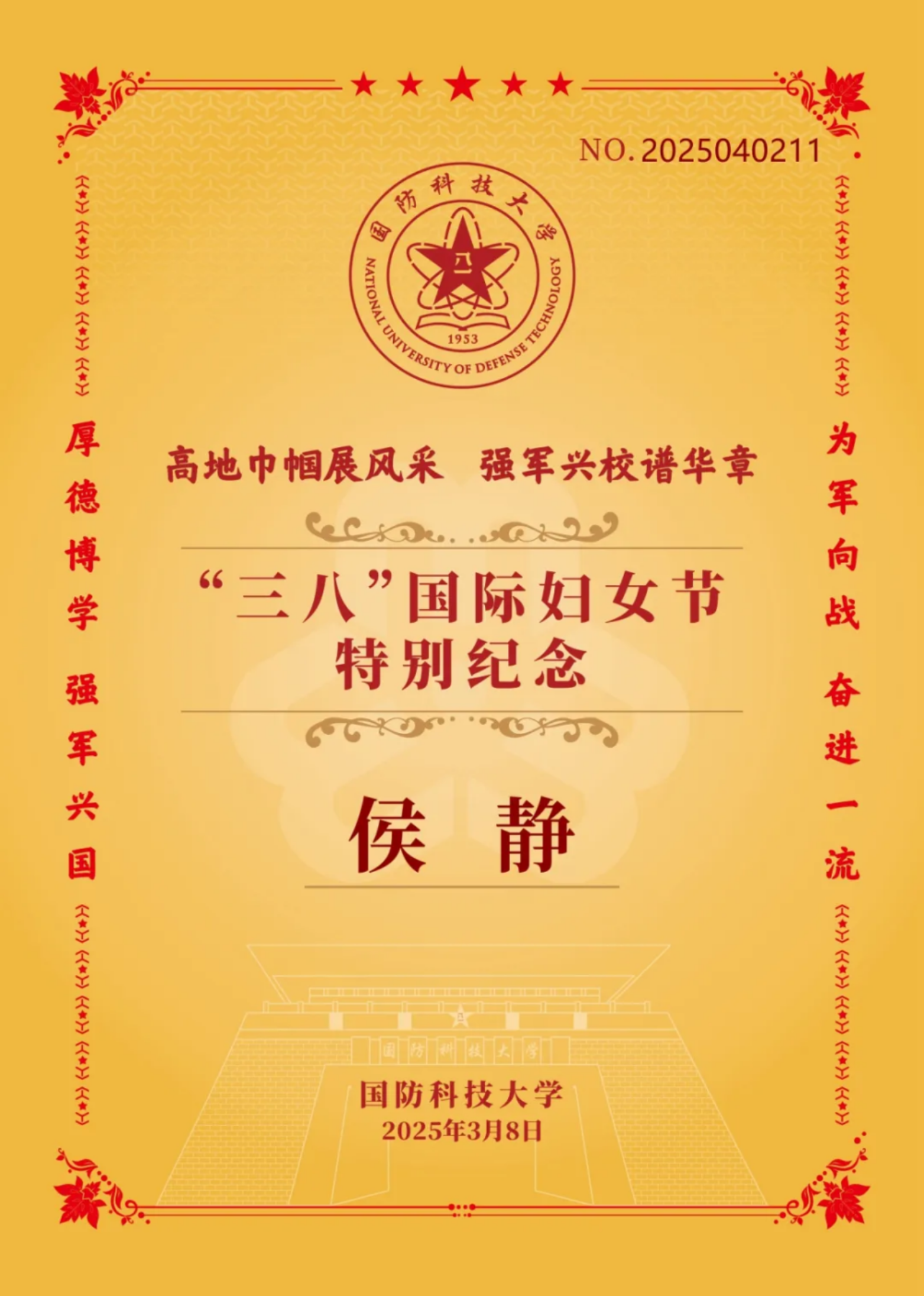 侯静的孩子,自幼便在父母为国防事业忙碌奔波的身影中成长,深受触动。在学校里,他关心集体,努力学习,以父母为榜样,最终保送进入清华大学物理系。