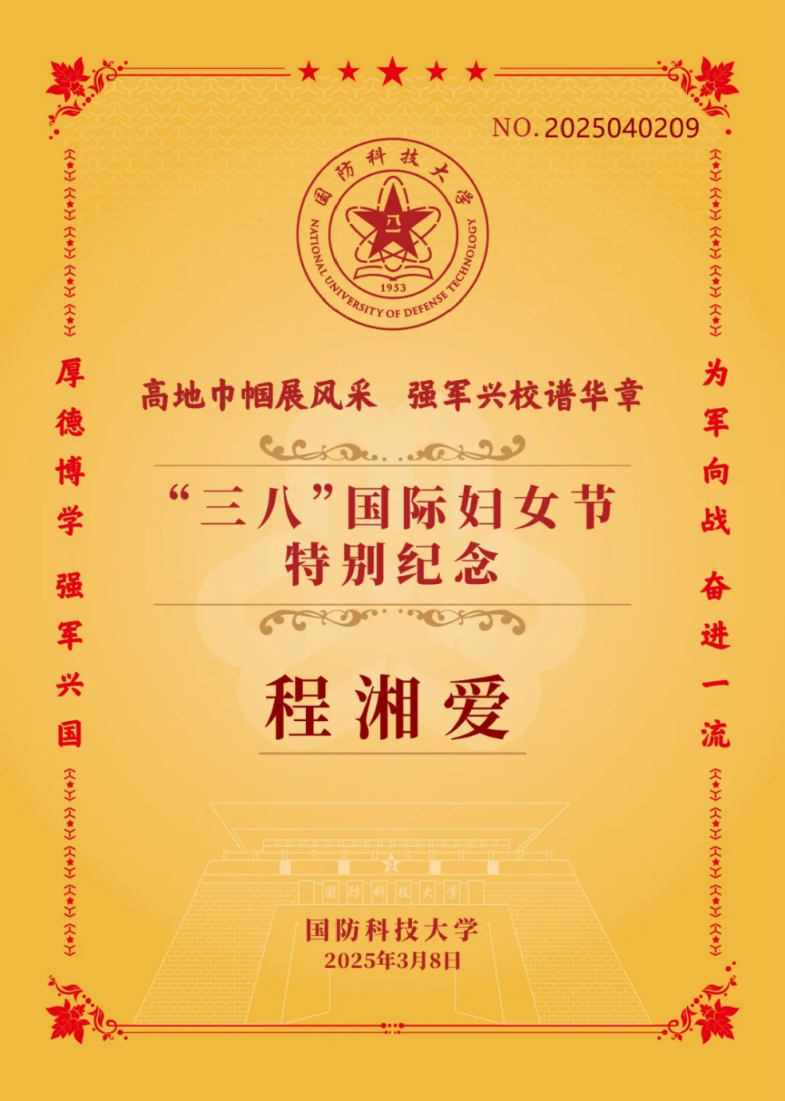 程湘爱是光学领域的专家,成果多次获得国家级奖项,她倾心育人,是学员们爱戴的“程妈妈”。她的爱人彭老师在自己的领域同样出色,两人无论在生活还是工作中,都相互支持、同声相应。“他也是我的大后方。”程湘爱笑言,彭老师在材料整理上比较在行,有一年程湘爱团队报奖,彭老师还仔细帮她研读材料、提了不少修改建议。专业上,彭老师是技术骨干,多次为部队解决技术难题;生活里,他又是“万能修理工”,家中的电器故障都能轻松解决。二人生活简单,热爱体育活动,彭老师是系里足球队、羽毛球队的主力队员,程湘爱曾是学校运动会跳远金牌得主,校园的田径场上经常能看到他们活力满满的身影。“简单即幸福。”这是程湘爱常挂在嘴边的一句话。